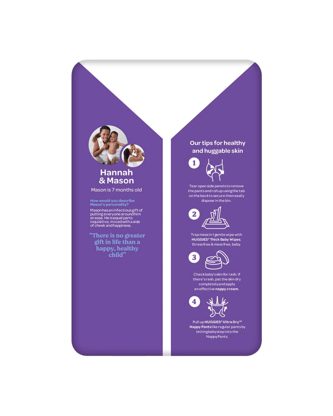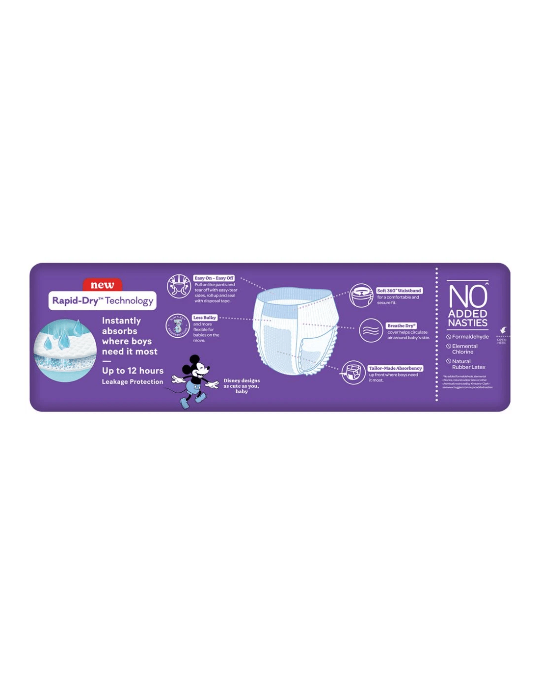 Huggies Nappy Pants are essential companions throughout your young one's journey of growth. They have rapid-dry technology for quick-working absorption, and offer up to 12 hours of leakage protection.