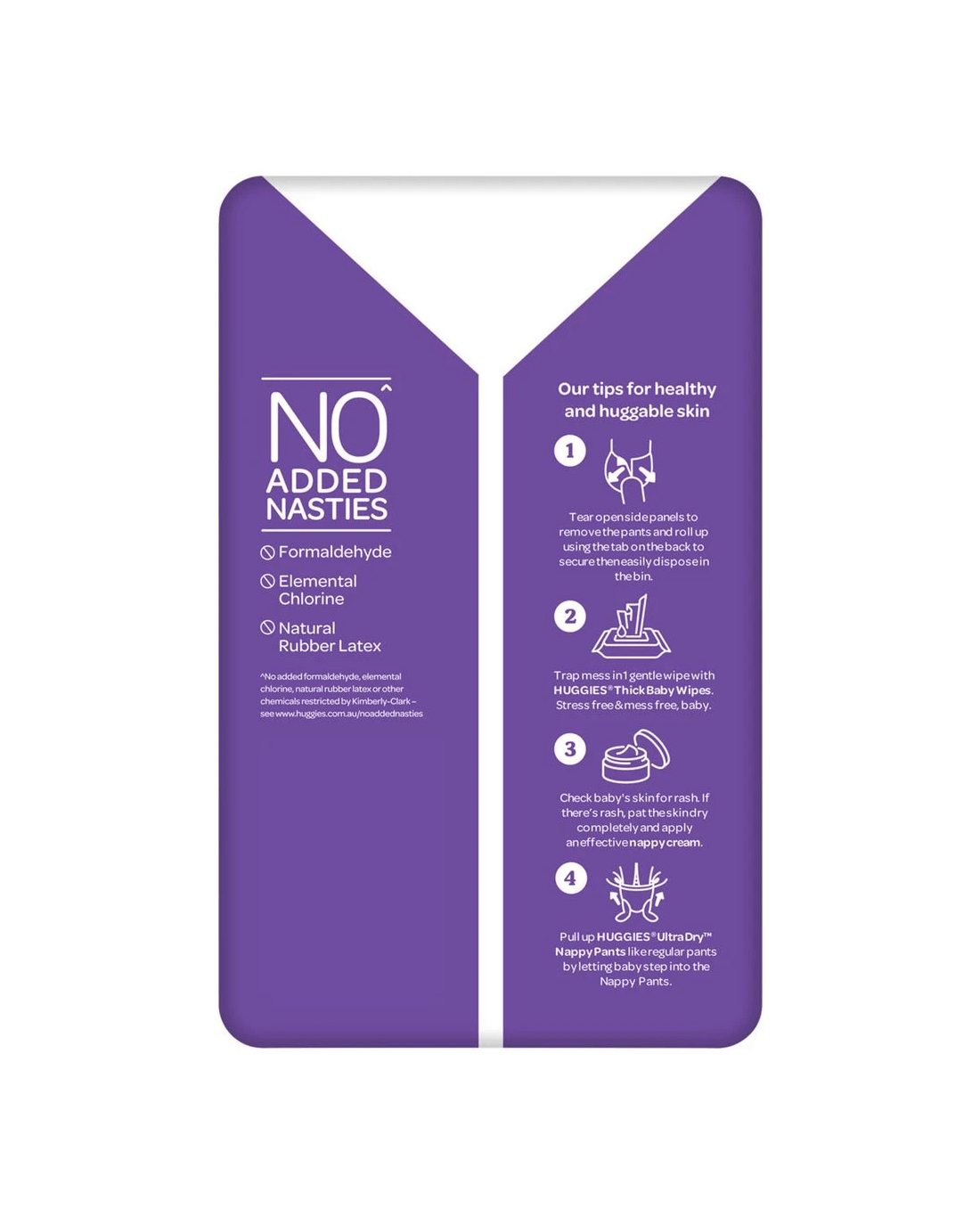 Huggies Nappy Pants are essential companions throughout your young one's journey of growth. They have rapid-dry technology for quick-working absorption, and offer up to 12 hours of leakage protection.