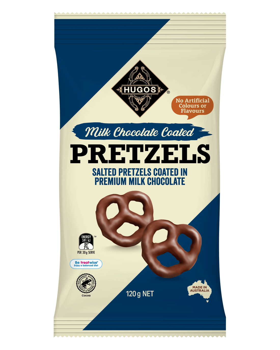 Features- Salted pretzels coated in premium milk chocolate