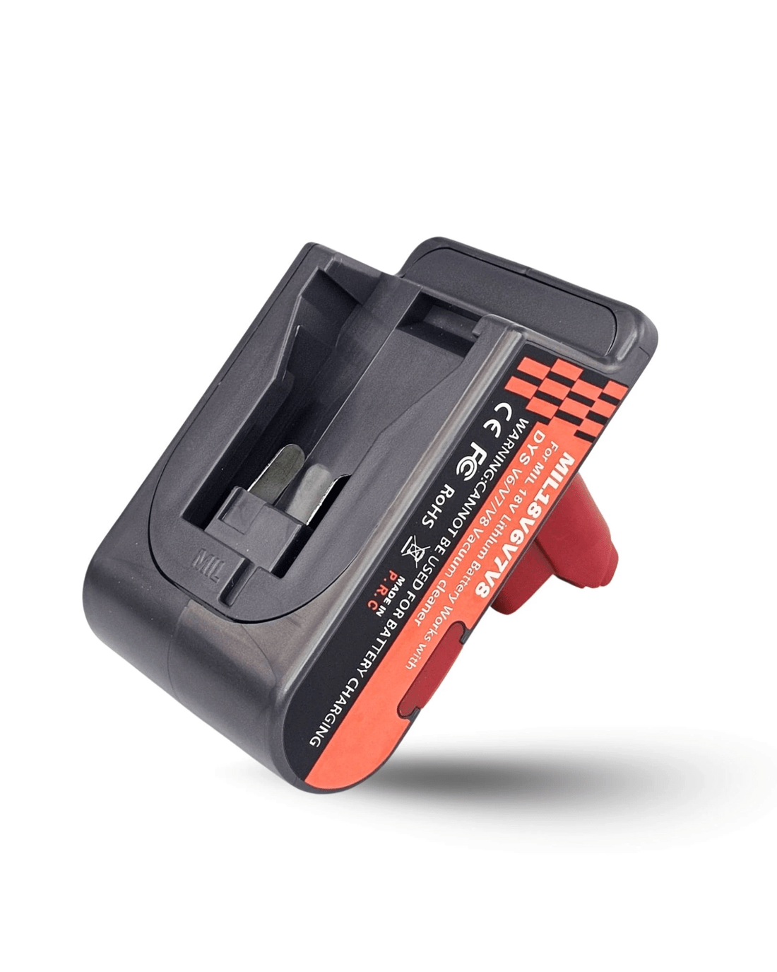 The Milwaukee M18 to Dyson Battery Converter/Adapter enables the usage of Milwaukee 18V Li-Ion batteries with Dyson V6, V7, V8, DC58, and DC59 vacuum cleaners, offering a practical solution for Dyson users with limited battery life. Constructed from durable ABS material, this adapter is easy to install and remove and features smart protection systems adhering to safety standards. Equipped with an indicator light, it provides a visual status of battery life, ensuring uninterrupted cleaning performance.