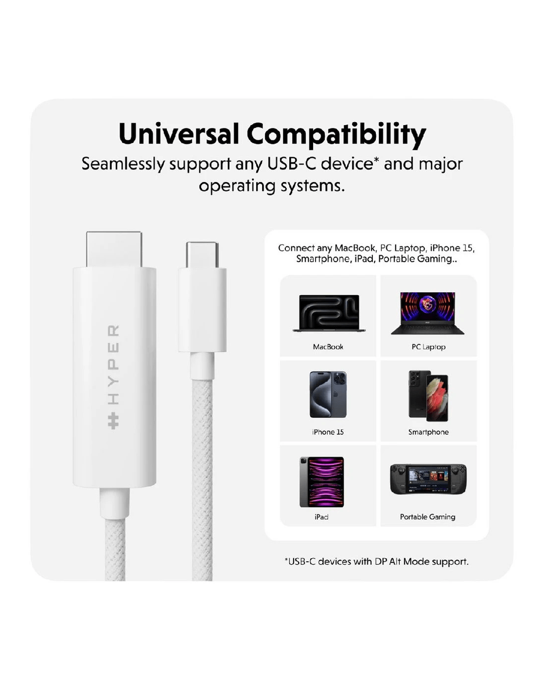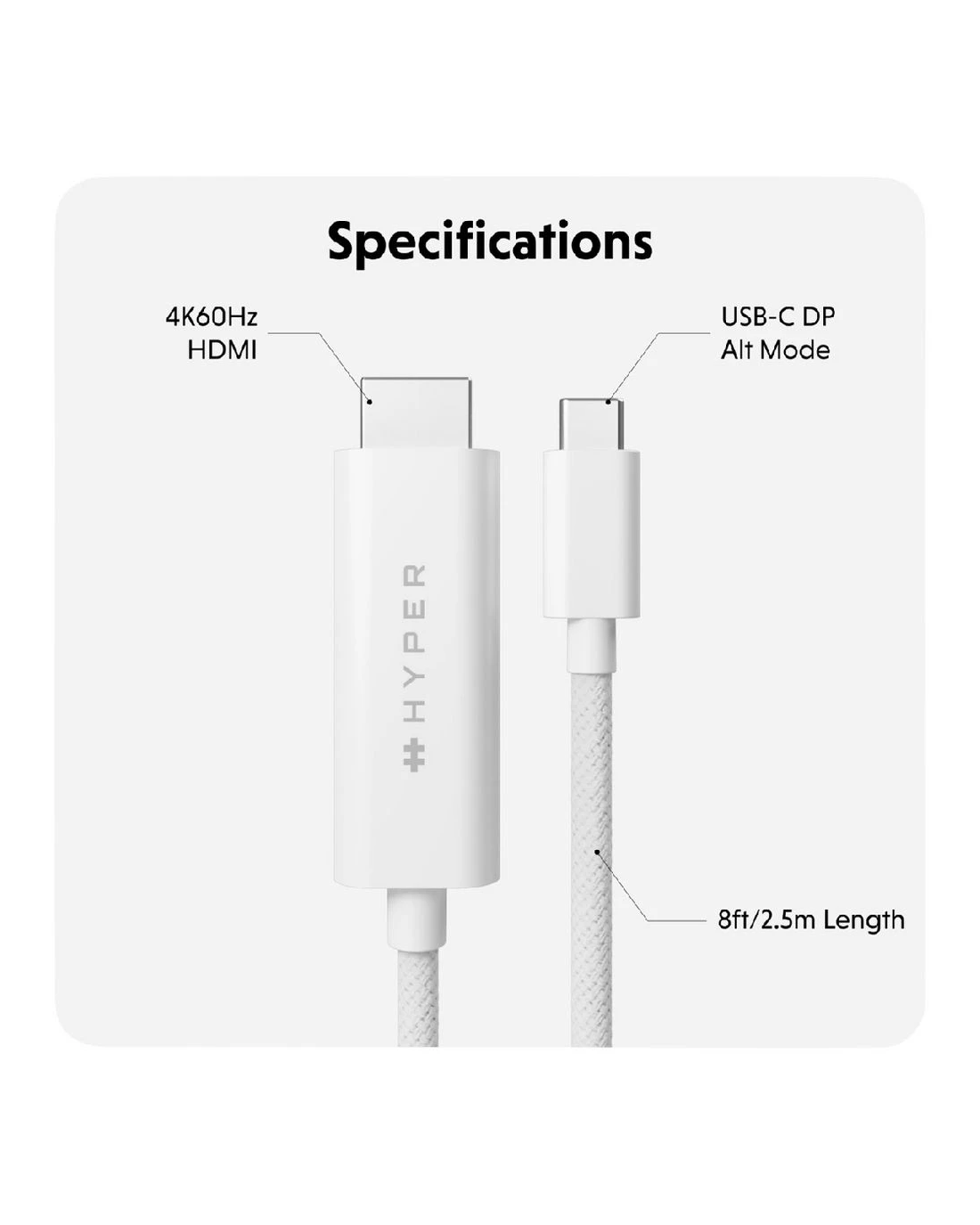 Sold by OfficeworksHyperDrive USB-C to HDMI 4K60Hz Cable 2.5m White
