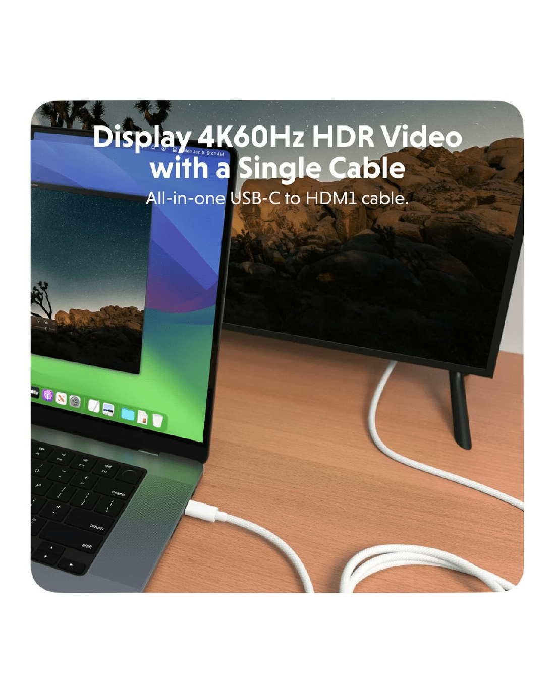 Find the perfect connection with this premium cable solution from HyperDrive. This USB-C to HDMI cable is 4K60Hz compatible for UHD video transmission. Plus, the 2.5m length ensures it can cover the distance between your devices with ease.