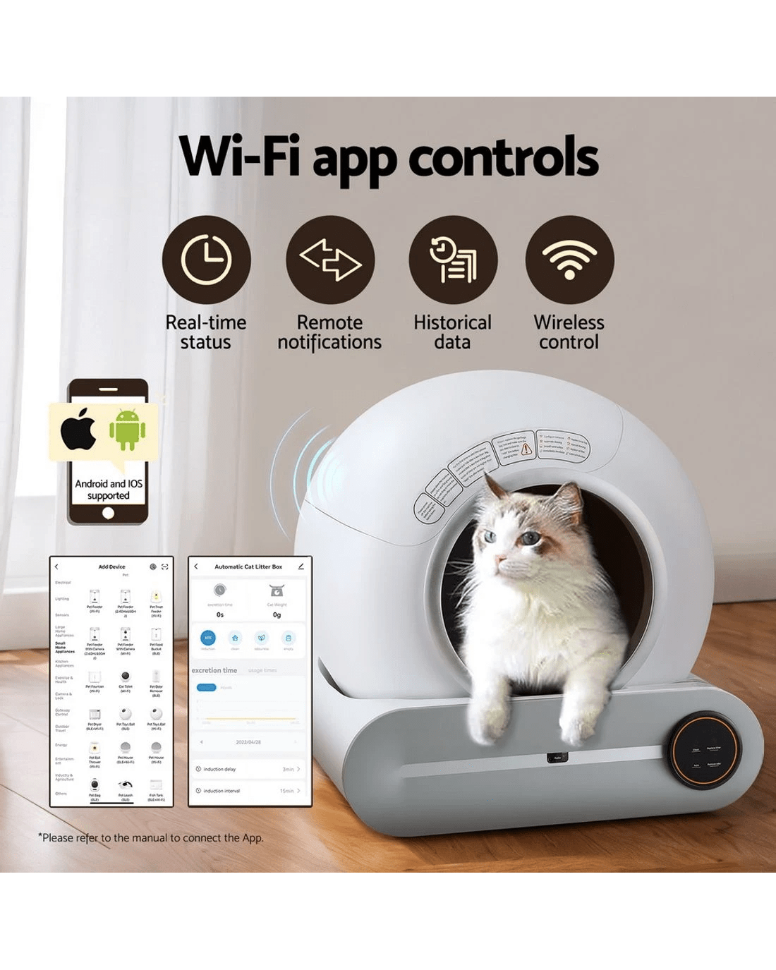 i.Pet Automatic Cat Litter Box Self-Cleaning Large Smart Toilet Tray App Control 9L - White