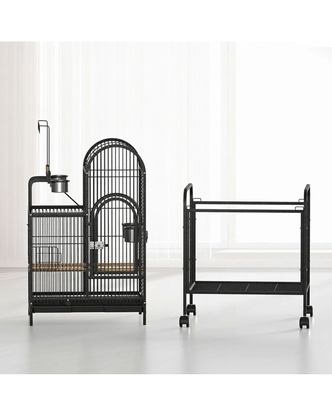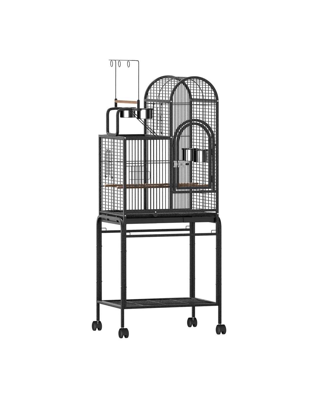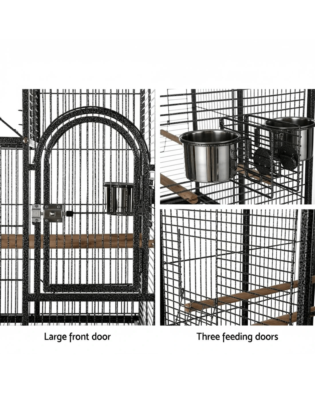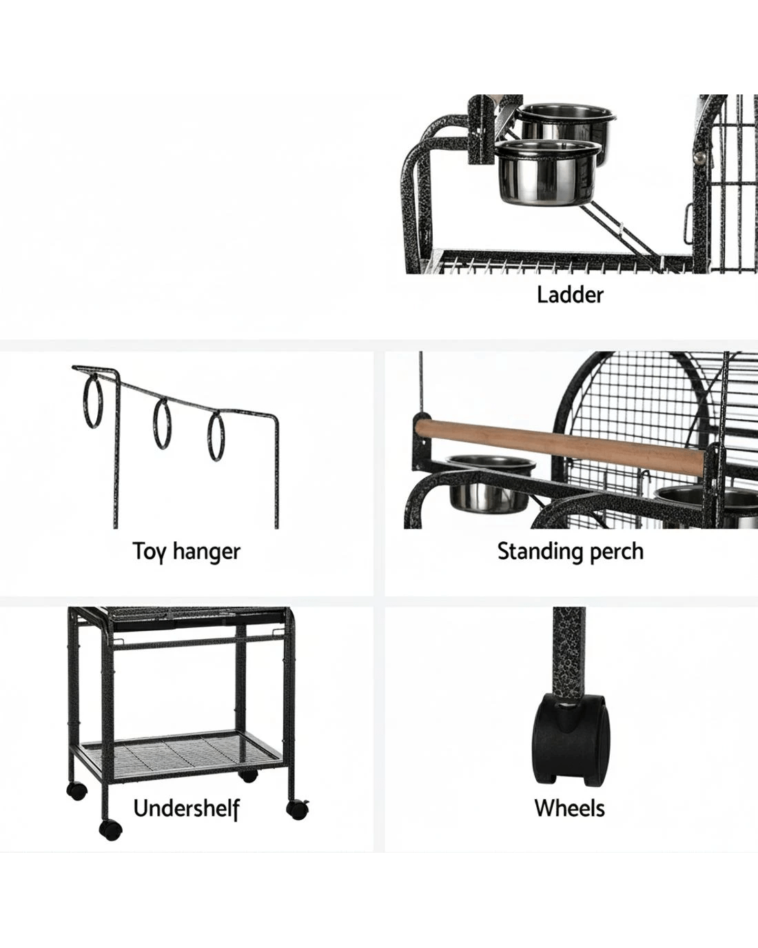 Explore the ultimate habitat for your feathered friends with this dynamic i.Pet bird cage. It seamlessly integrates playful elements like a climbing ladder and a toy hanger with practical features such as wooden perches and feeders. An undershelf provides additional storage space. The design emphasises ease of use, with a slide-out cleaning tray and a removable base for simple maintenance. Multiple doors offer effortless access to the cage, and the inclusion of smooth-rolling castor wheels ensures convenient mobility. Crafted with attention to detail, this cage is a haven of comfort and fun for your birds.