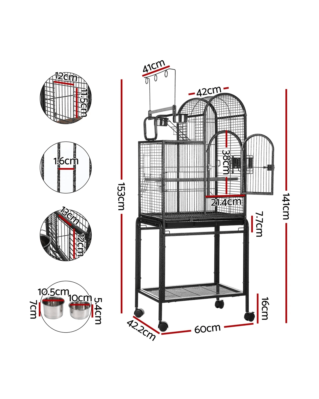 Cage dimensions: 56cm x 42cm x 95cm