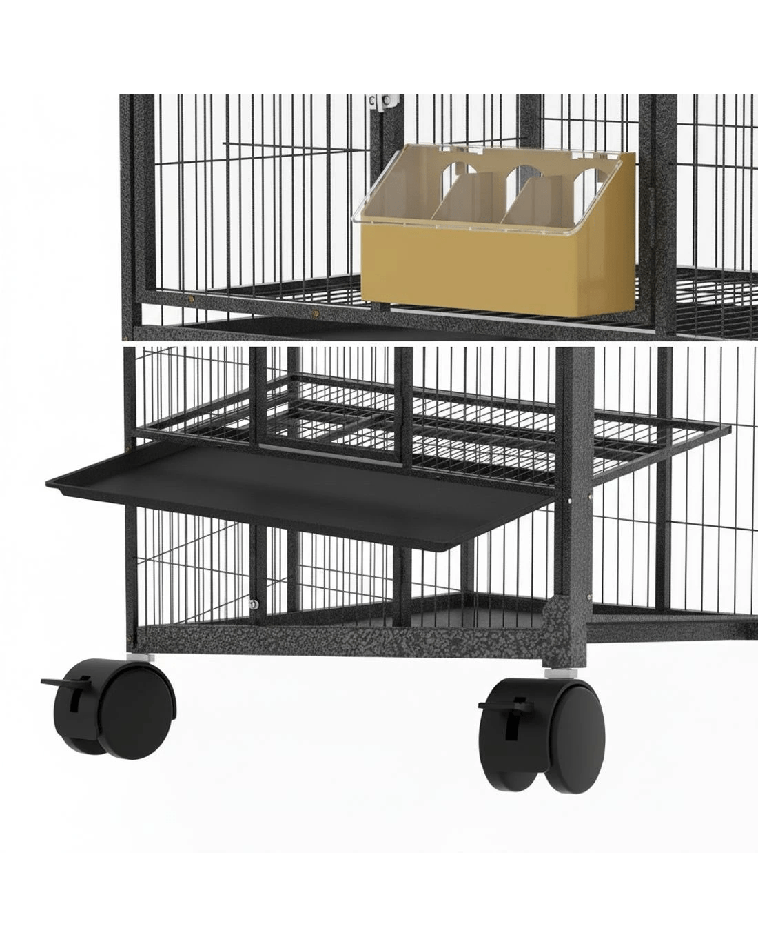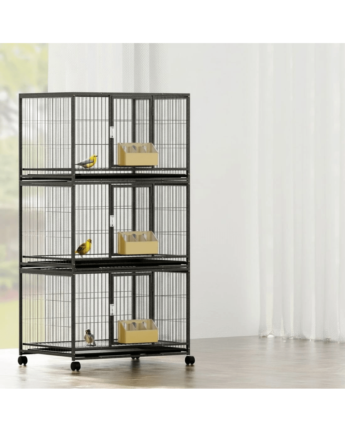 Provide your feathered friends with a spacious and comfortable home with this easy-to-assemble i.Pet Bird Cage. Designed for small birds such as canaries, parakeets, lovebirds, budgies, and cockatiels, it features three convenient access doors for easy cleaning and interaction with your birds. Three slide-out removable trays make cleaning a breeze, while the large, three-section feeder helps ensure there's always plenty of food available. Lockable castor wheels allow for easy mobility, letting you place the cage in the perfect spot.