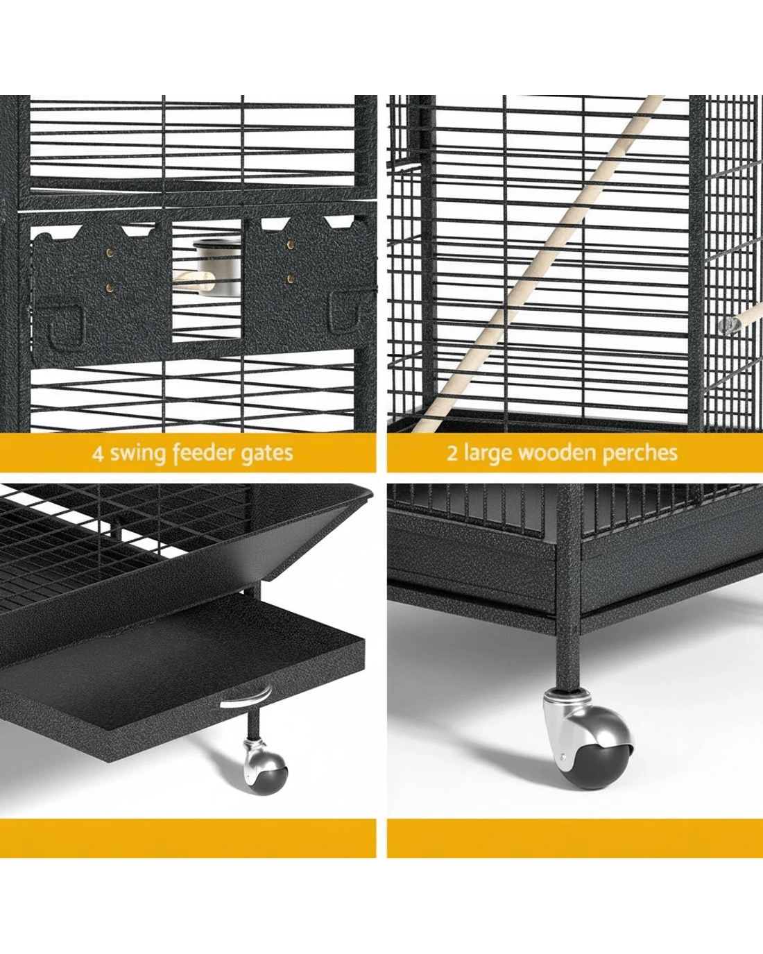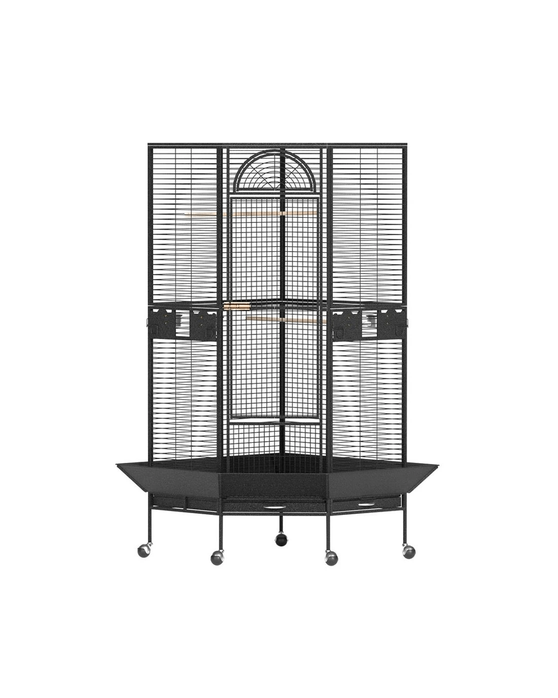 Sold by Aisle Sixi.Pet Bird Cage Large Jumbo Aviary Budgie Perch Cage Parrot Stand Wheels Corner - Black