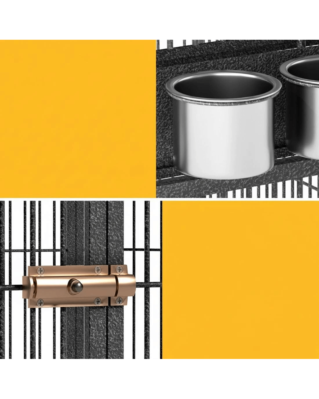 Give your large bird the space it needs to fly and thrive with the i.Pet Bird Cage. Our walk-in aviary is perfect for the care of large birds, reptiles or even as a temporary shelter for your family dog. Made from durable wrought iron with a protective coating, this cage ensures long-lasting use and resistance against rust and corrosion. The cage features a large walk-in door for easy access and simple cleaning. The swing-out feeder doors and three stainless steel food cups provide a convenient feeding solution, so you can feed your pets without entering the cage. With latched locks, your pets will be safe and secure inside the cage. The aviary is perfect for large birds like parrots, macaws, and cockatoos, offering them ample space to move around and exercise throughout the day. Give your pets the ideal home with the i.Pet Bird Cage.