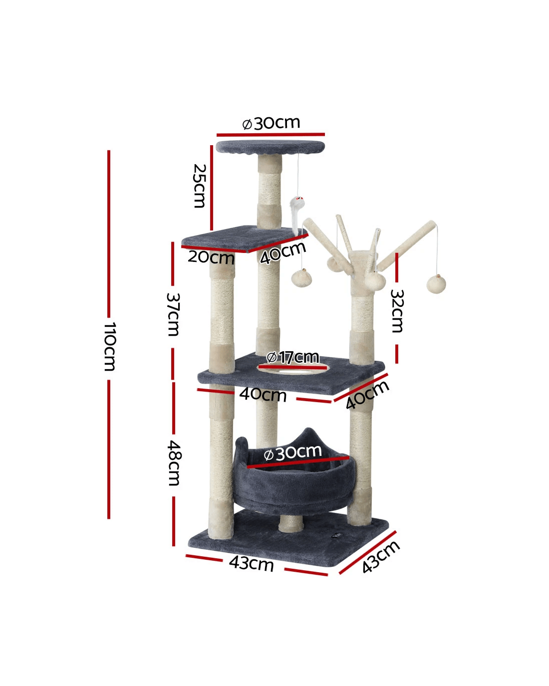 Sold by Aisle Sixi.Pet Cat Tree 110cm Tower Scratching Post Scratcher Wood Condo House Bed Toys - Multi
