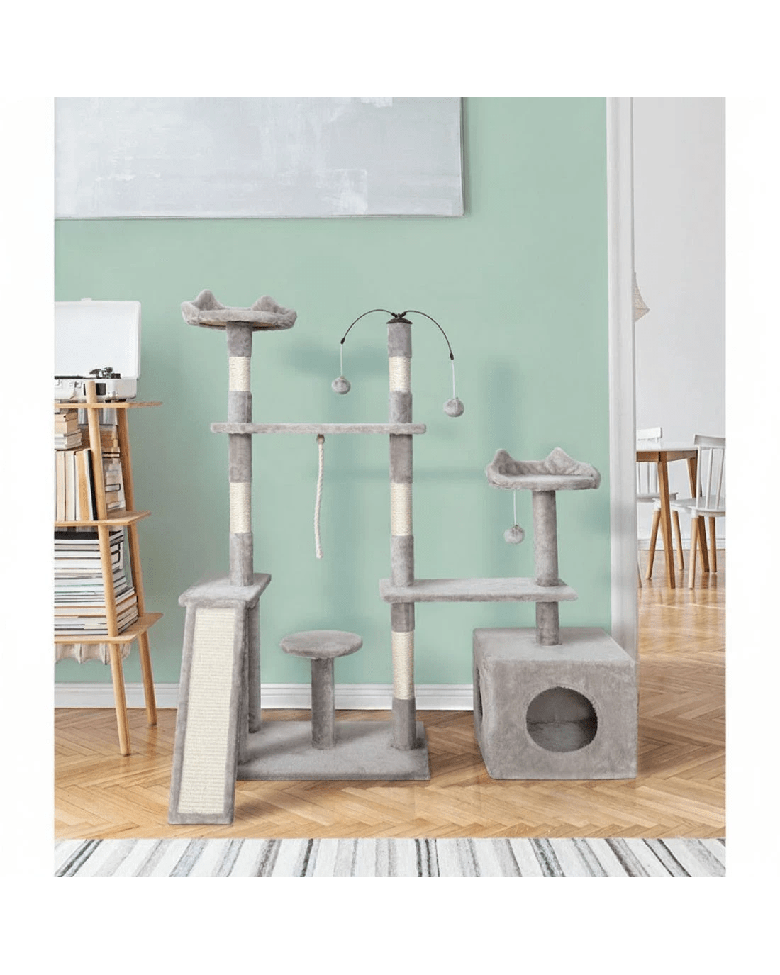 Our cat tree will let your feline friend play out its natural instinctive behaviour. It features a 4-level design with play cubicles, jumping platform, activity balls, sisal rope, sisal posts, and sisal claw board. This cat tree offers unlimited opportunities to provide your pets with fun-filled moments and keep them healthy. It also has comfortable velvet upholstered surfaces, ideal for napping after a long playtime. Furthermore, the sisal claw board is perfect for your pets to scratch and claw and keeps their claws healthy and distracts them from scratching the furniture. Crafted from wood with sisal rope, posts, and claw board, our cat tree is both pet and eco-friendly.
