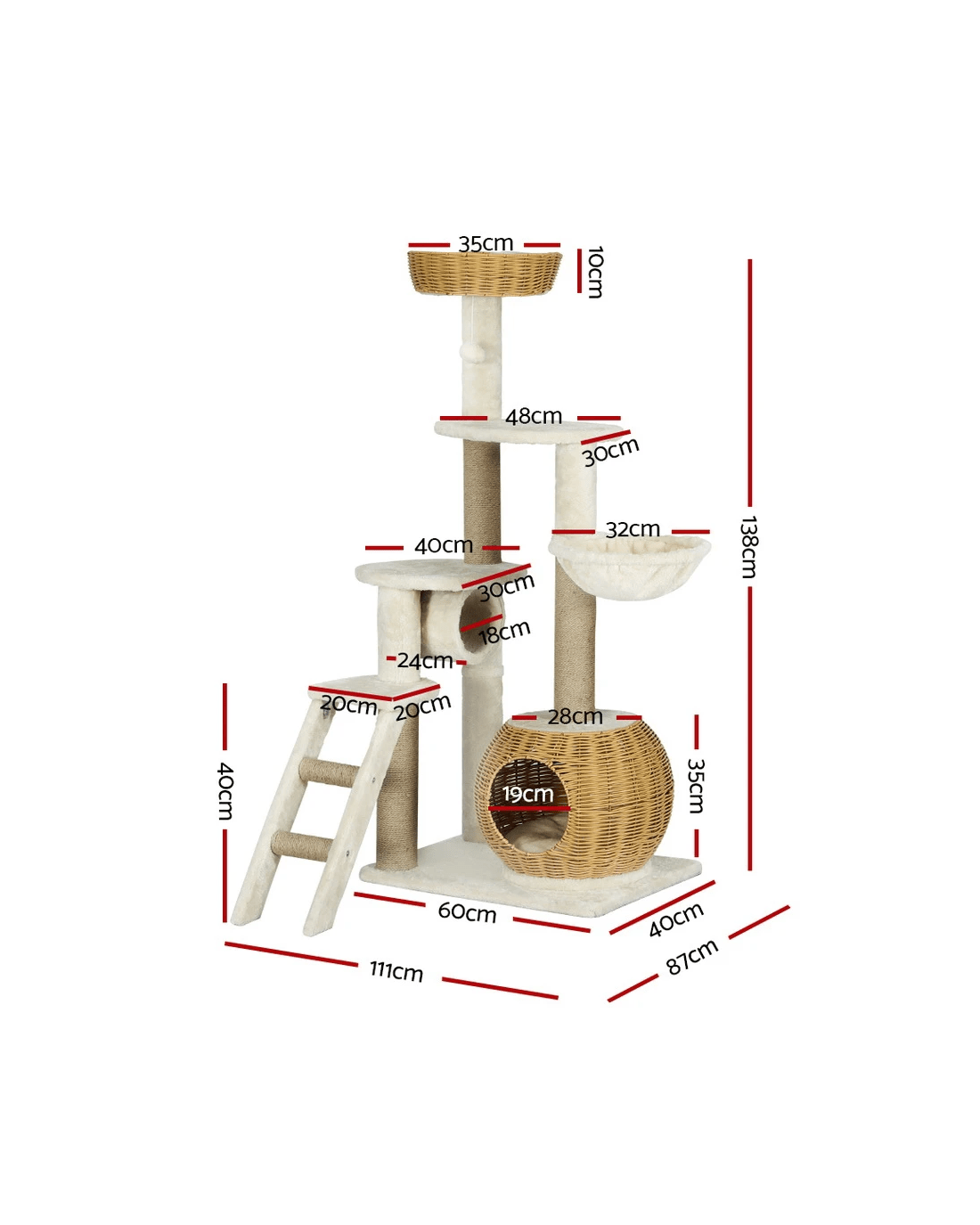 Sold by Aisle Sixi.Pet Cat Tree 138cm Tower Scratching Post Scratcher Wood Bed Condo House Rattan Ladder - Multi