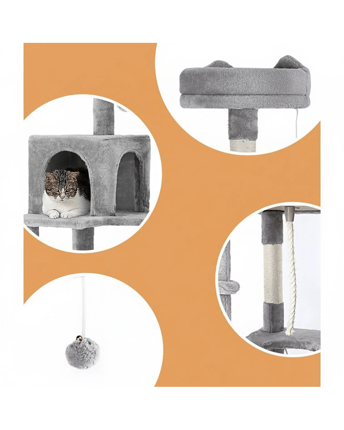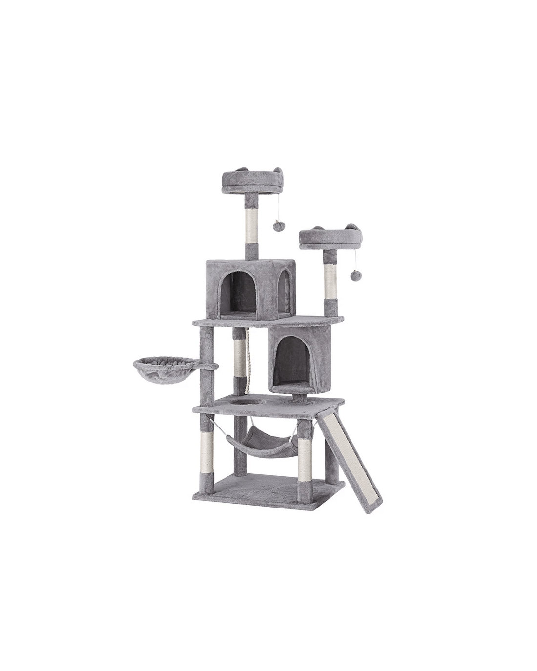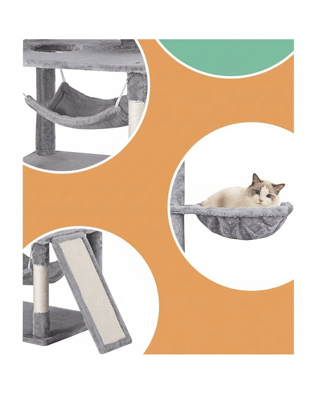 Built to satisfy the natural instincts of your precious pet, our i.Pet Cat Tree includes a host of nooks and crannies for your cats to have hours of fun scratching, hunting, climbing, jumping, hopping or simply lounging around. The tree is made from sturdy wooden construction and upholstered with a plush scent- and chemical-free velvety linen surface for extra comfort and style. The hanging balls and ropes will keep your cat curious and alert. Natural woven sisal twine towers encourage your cat's scratching instincts while keeping your furniture scratch-free. Best of all, the firm base ensures that the tree remains a durable, solid-standing cat haven with total peace of mind for you. Can we hear a meow to that?