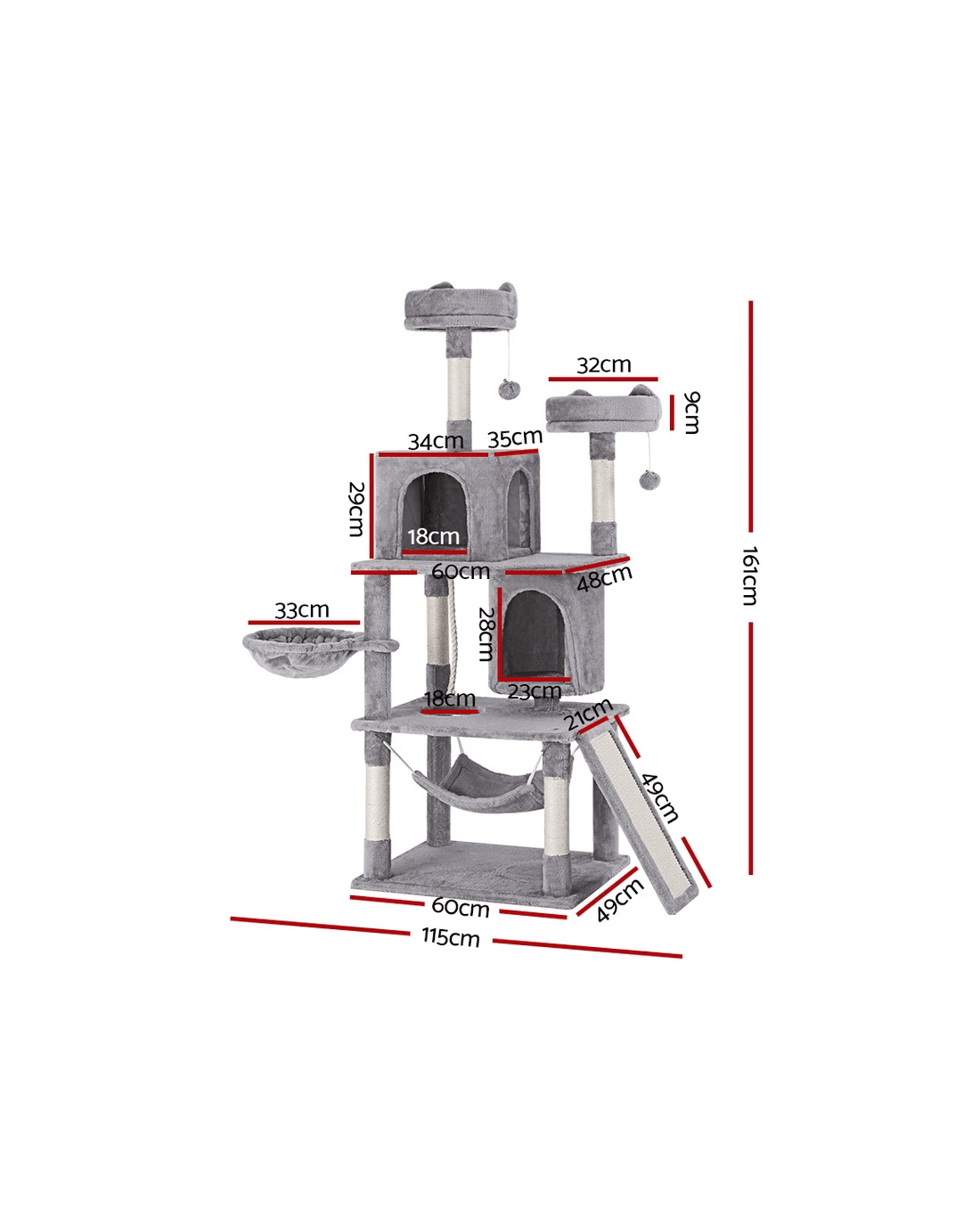 Sold by Aisle Sixi.Pet Cat Tree 161cm Tower Scratching Post Scratcher Trees Condo House - Grey