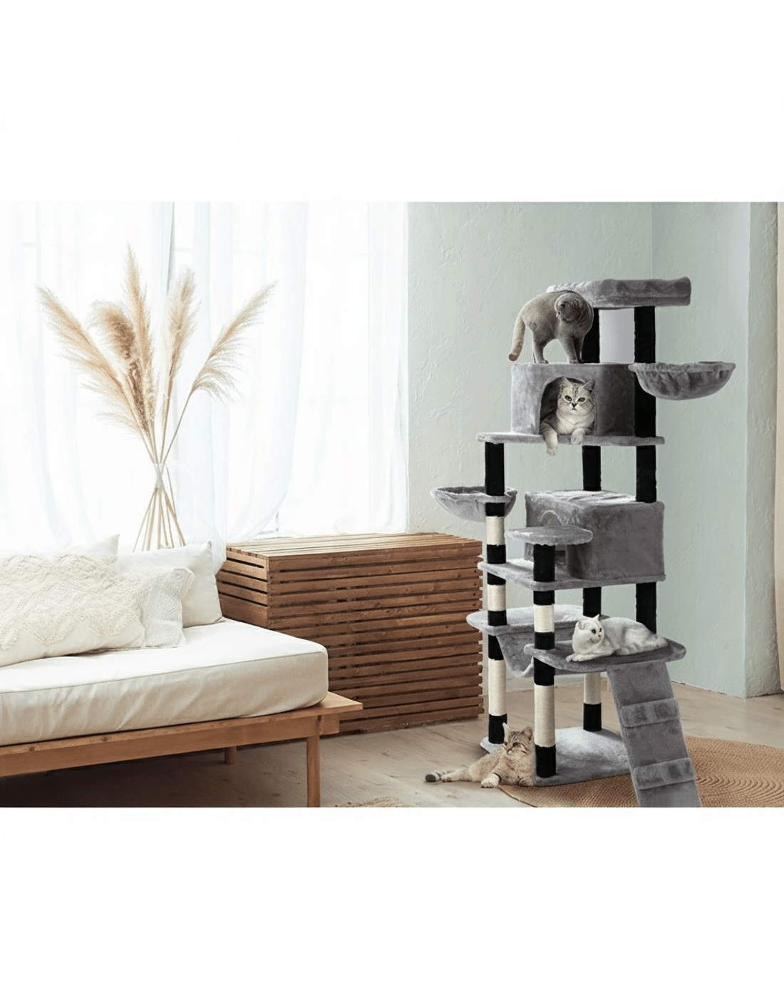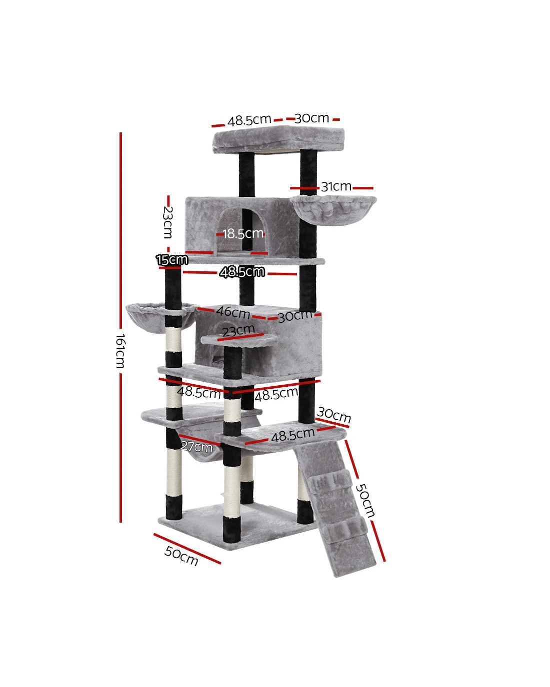 Sold by Aisle Sixi.Pet Cat Tree 161cm Tower Scratching Post Scratcher Wood Condo House Play Bed - Grey