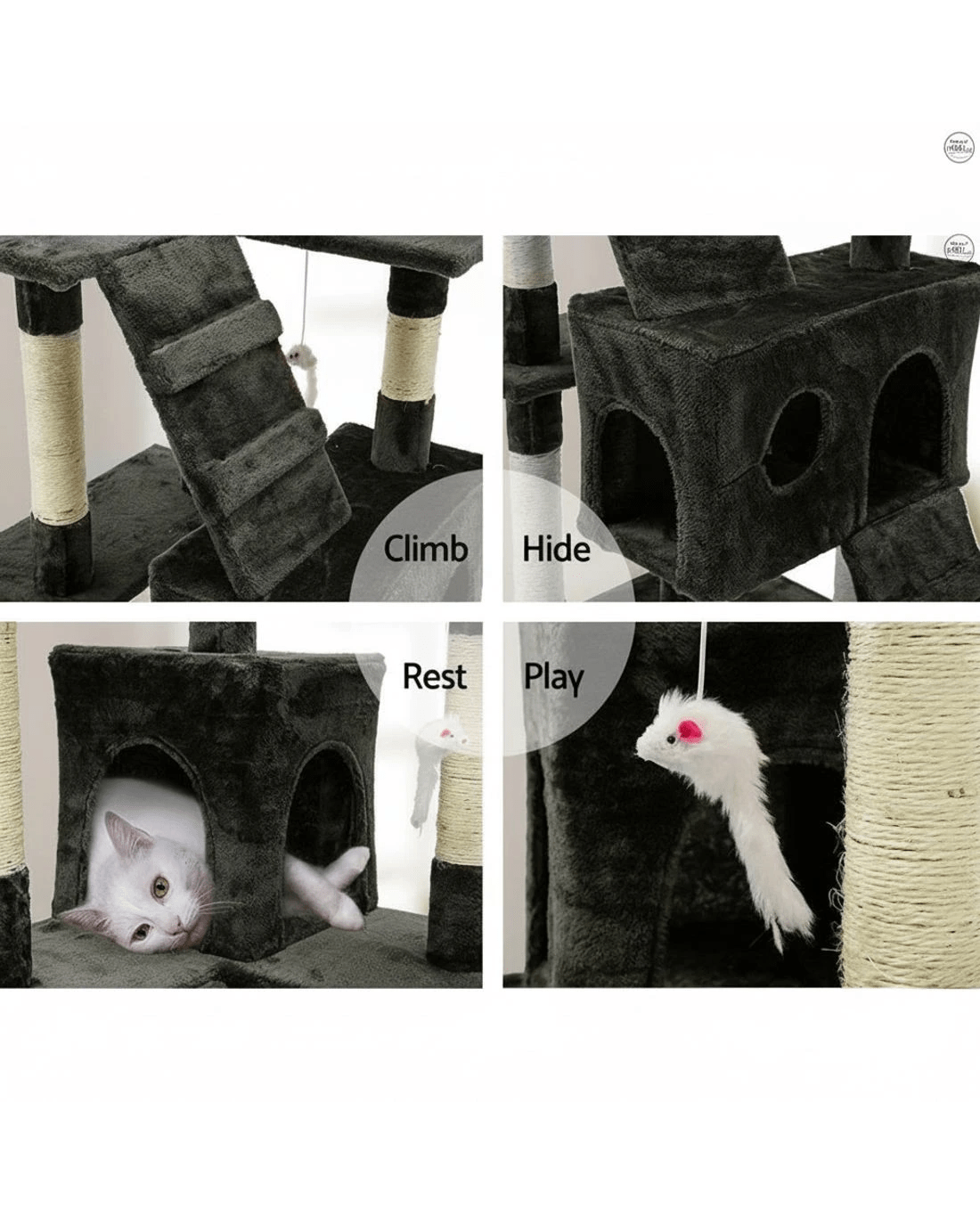 Includes scratching, perching, climbing, sleeping all in one piece