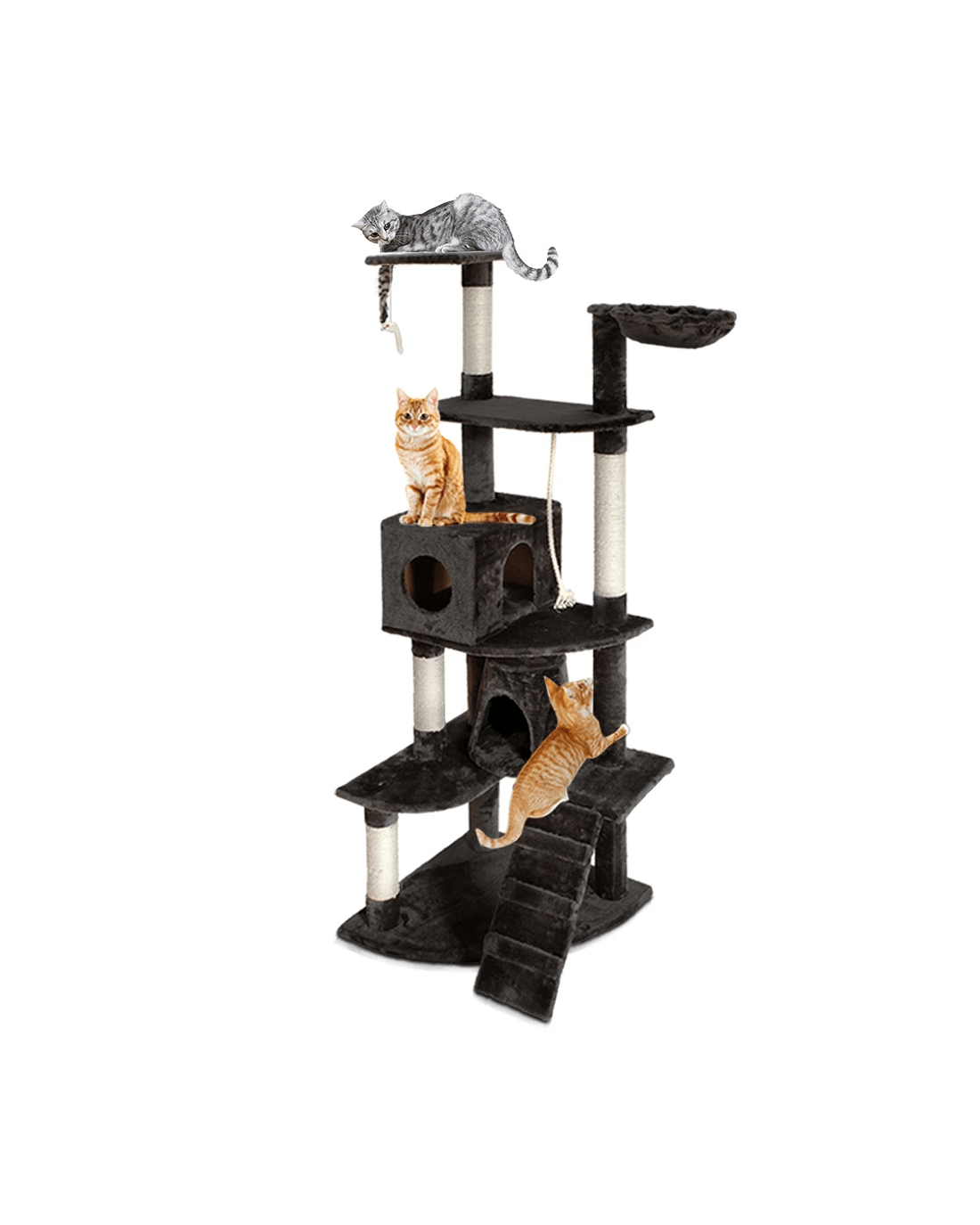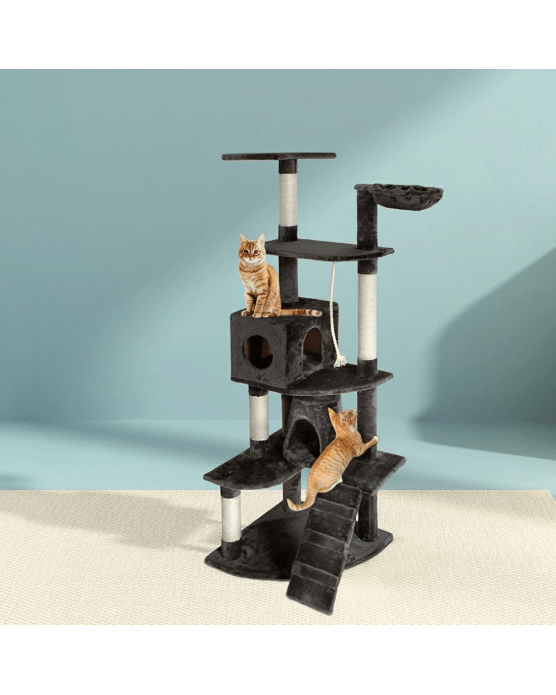 It's absolutely feline wonderland with our Stoney Cat Tree! Built to satisfy the natural instincts of your precious pet, our Cat Trees include a hosts of nooks and crannies for tom and tabby to have hours of fun scratching, hunting, climbing, jumping, hopping or simply lounging around. Even Garfield would be proud of these trees. Plus, with its sisal-covered scratching posts, you can rest assured that your furniture will stay cat-free for a very long time. Not least, the firm base and sturdy construction ensures that the trees remain a durable cat haven with total peace of mind for you. There is certainly one that fits your home, and is just right for your cat's energetic exploration. Can we hear a meow to that?