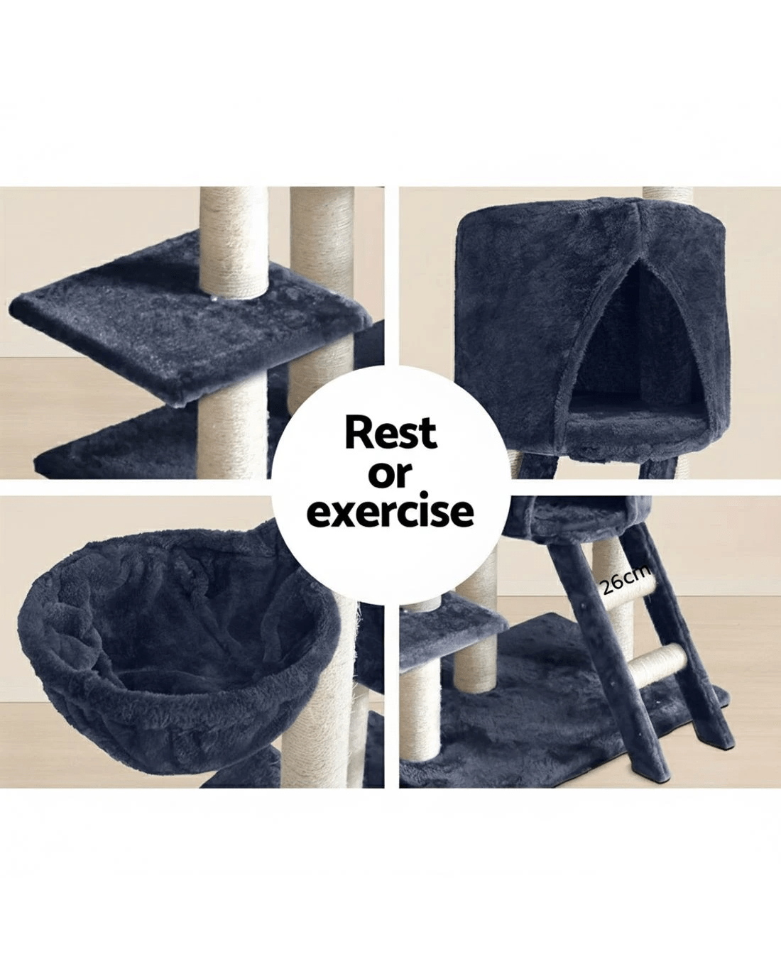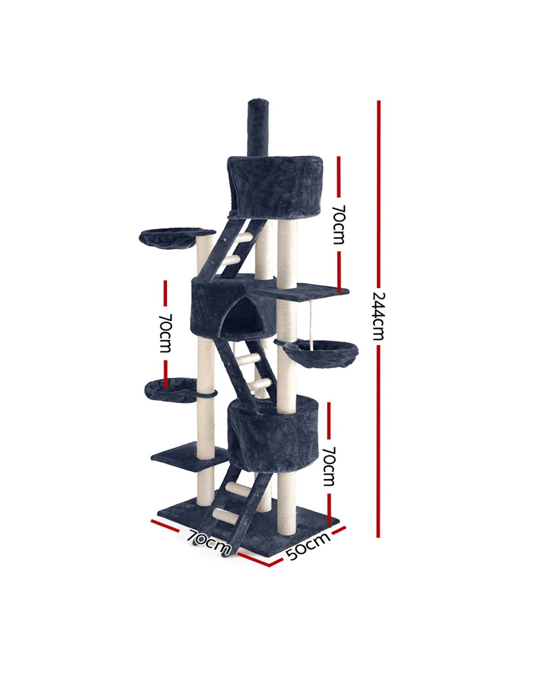 i.Pet Cat Tree 244cm Tower Scratching Post Scratcher Trees Condo House - Grey