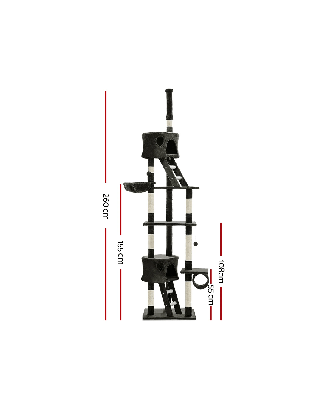i.Pet Cat Tree 260cm Tower Scratching Post Scratcher Condo House Trees - Grey