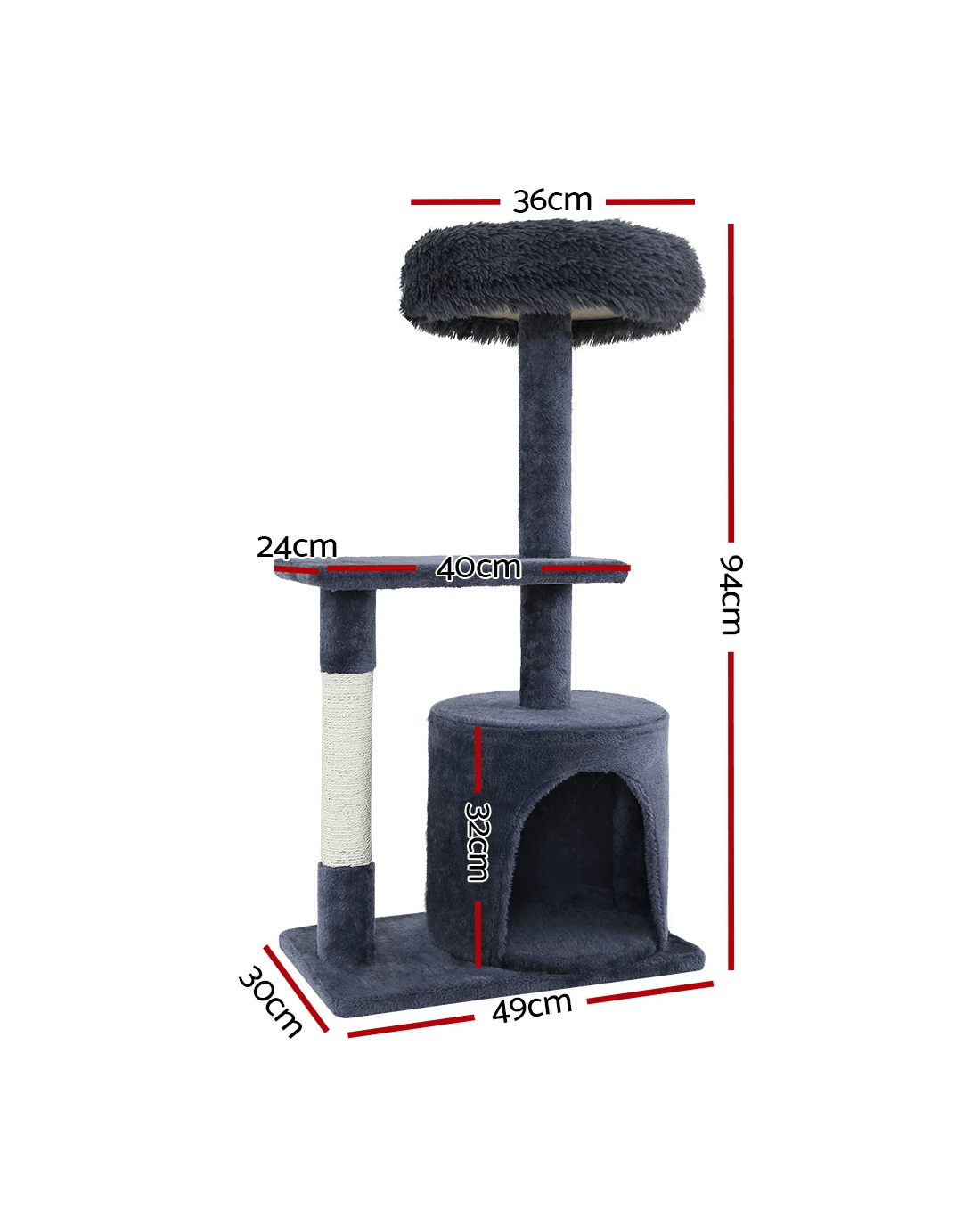Sold by Aisle Sixi.Pet Cat Tree 94cm Scratching Post Tower Scratcher Condo House Wood Trees - Grey
