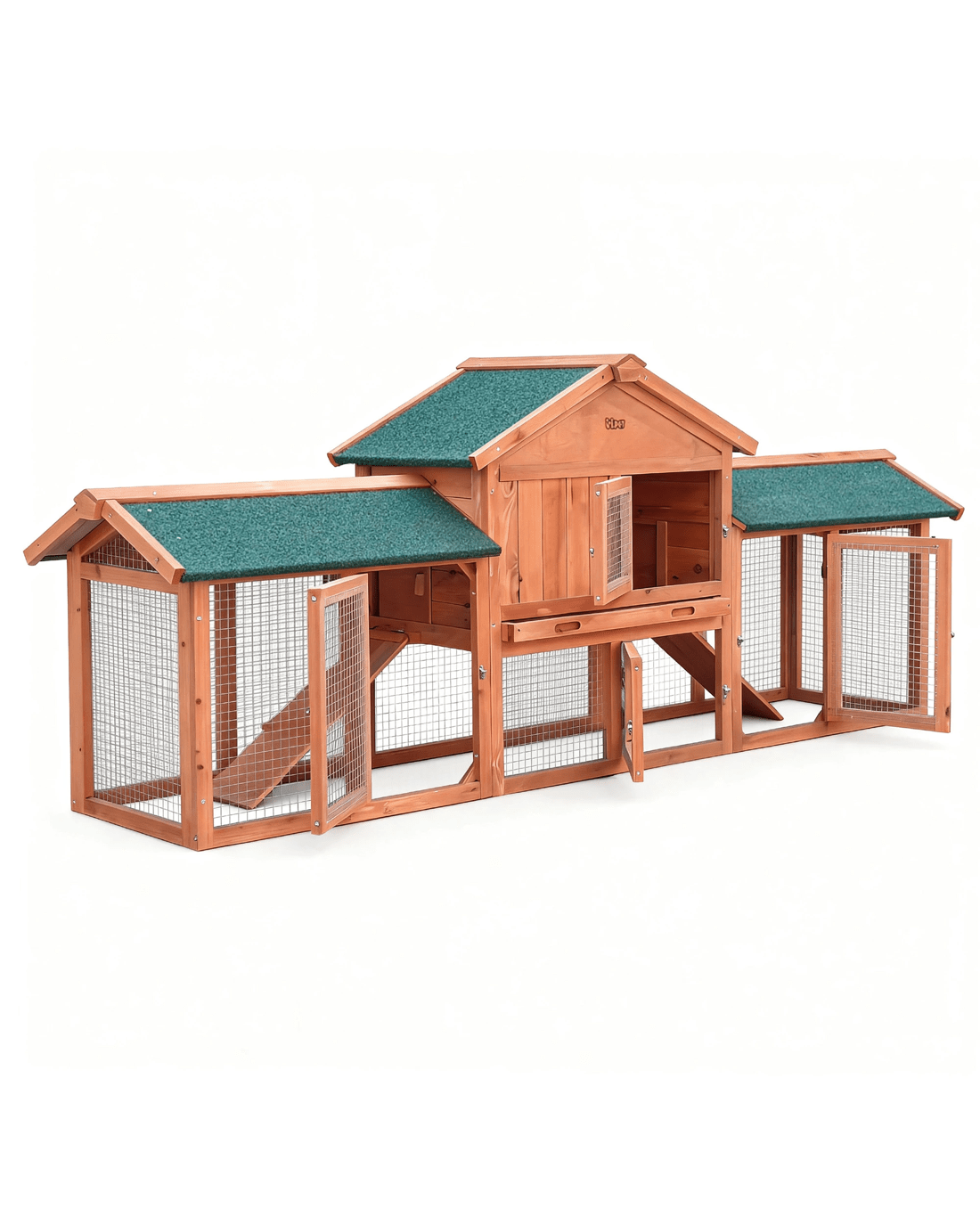 Featuring a fir wood construction, our i.Pet Pet Hutch is the perfect home for your little pets. It incorporates two living areas – one cosy bedroom on the upper level and a spacious play area on the ground level. The three doors provide easy access and cleaning to the living areas and are equipped with strong and firm security locks. The hutch is waterproof, anti-termite and is made of TUV approved eco-friendly materials. Moreover, it features a green asphalt roof to insulate your pets from the heat during summer and against the rain in winter, providing maximum comfort to your pets all year round. The hutch does not only provide a five-star living environment, the architectural design also makes cleaning and feeding easier for you. So seek no further than our pet hutch when looking for the ideal home for your pets!