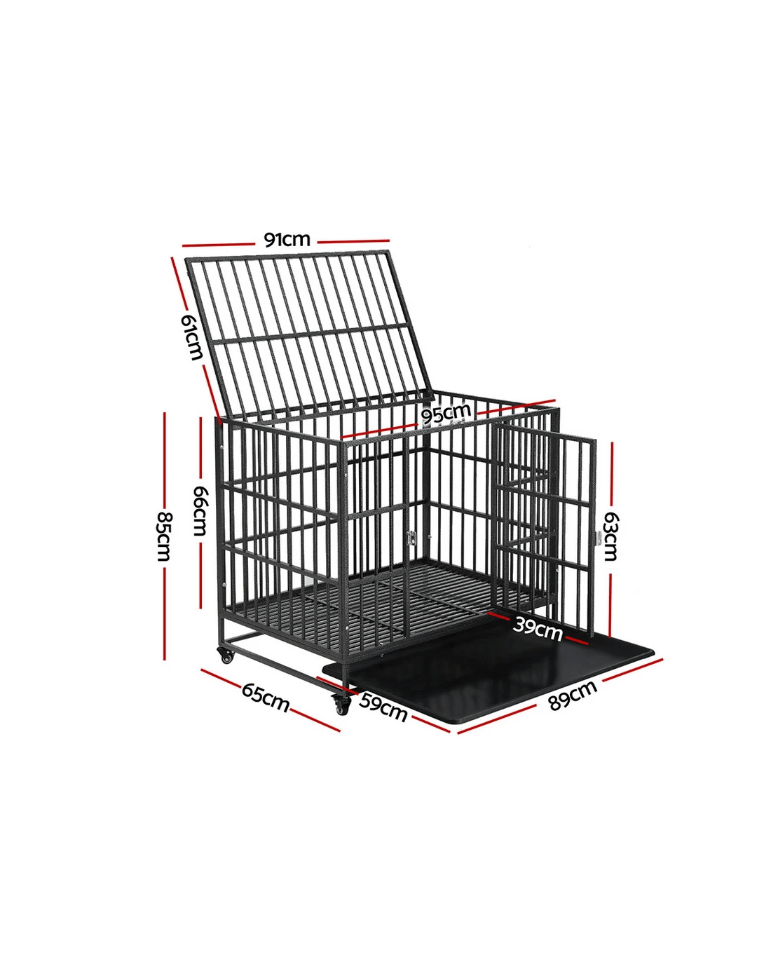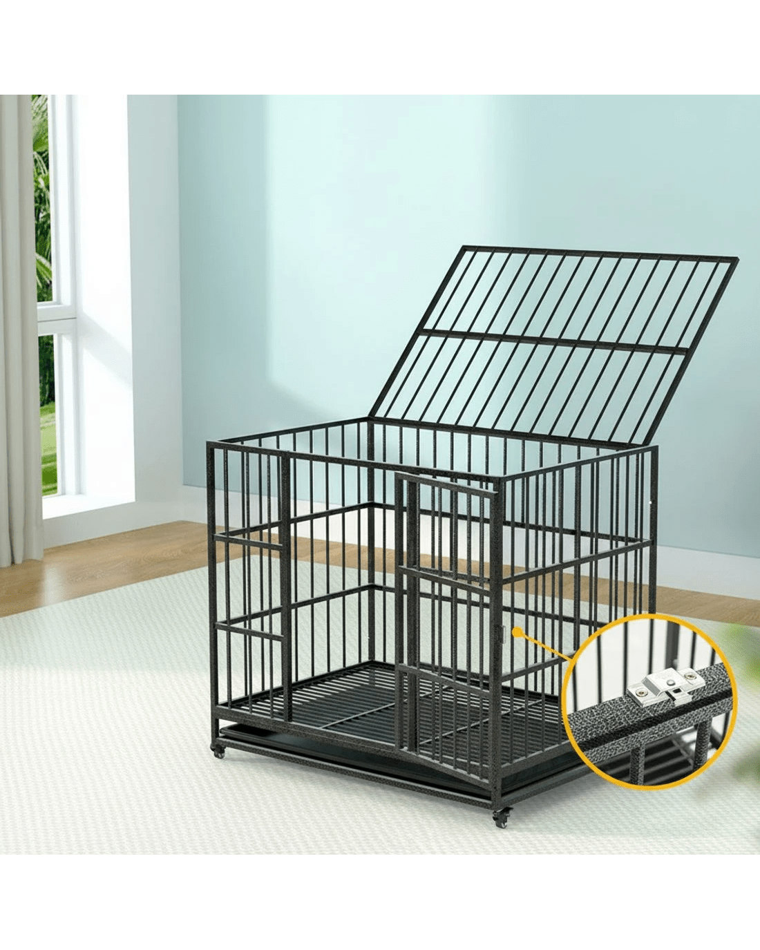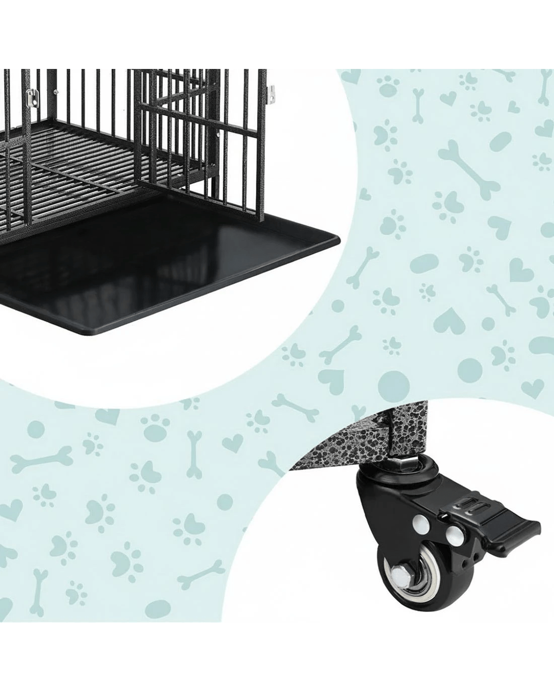 i.Pet Dog Cage Crate Large Puppy Cat Anti Bite Pet Kennel Wheels w/Tray 37'' - Black