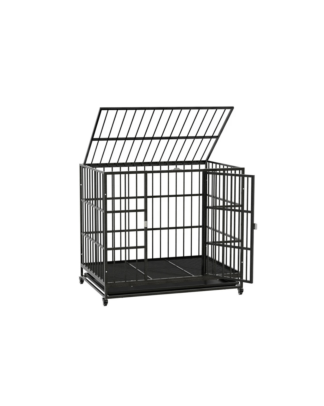 Introducing our i.Pet sturdy dog kennel, featuring lockable castors, square-sectioned tubes, and a detachable tray. Crafted from robust metal, it's perfect for medium-sized pets, providing durability and security.