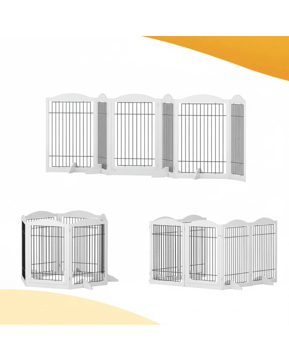 i.Pet Dog Gate Playpen Enclosure 6 Panel Pet Door Fence en Play Pen Stair - White