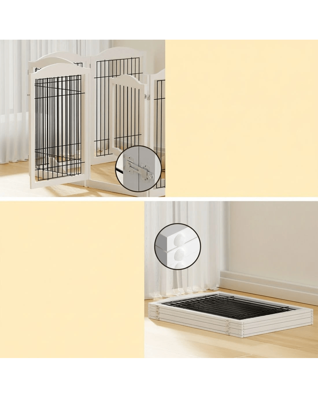 Keep your pets safe from hazards around the home and enhance your training with an i.Pet Pet Playpen. You can use our playpens to keep pets separate while you perform household tasks, teach them to self-soothe and reinforce toilet training in a specific area of the home. The playpen has a wide variety of configurations to suit any room, and the durable 360-degree steel hinges ensure long-lasting use. Rubber-padded feet and two wooden supports prevent the gate from moving, so you can rest assured your pet will stay in one place. Best of all, the playpen features a compact design that can be easily folded for transport, so you can set up an enrichment space anywhere – at the park, in the home, or even out with friends. Ensure your pet is kept safe and entertained in the versatile 6-panel i.Pet Pet Playpen.