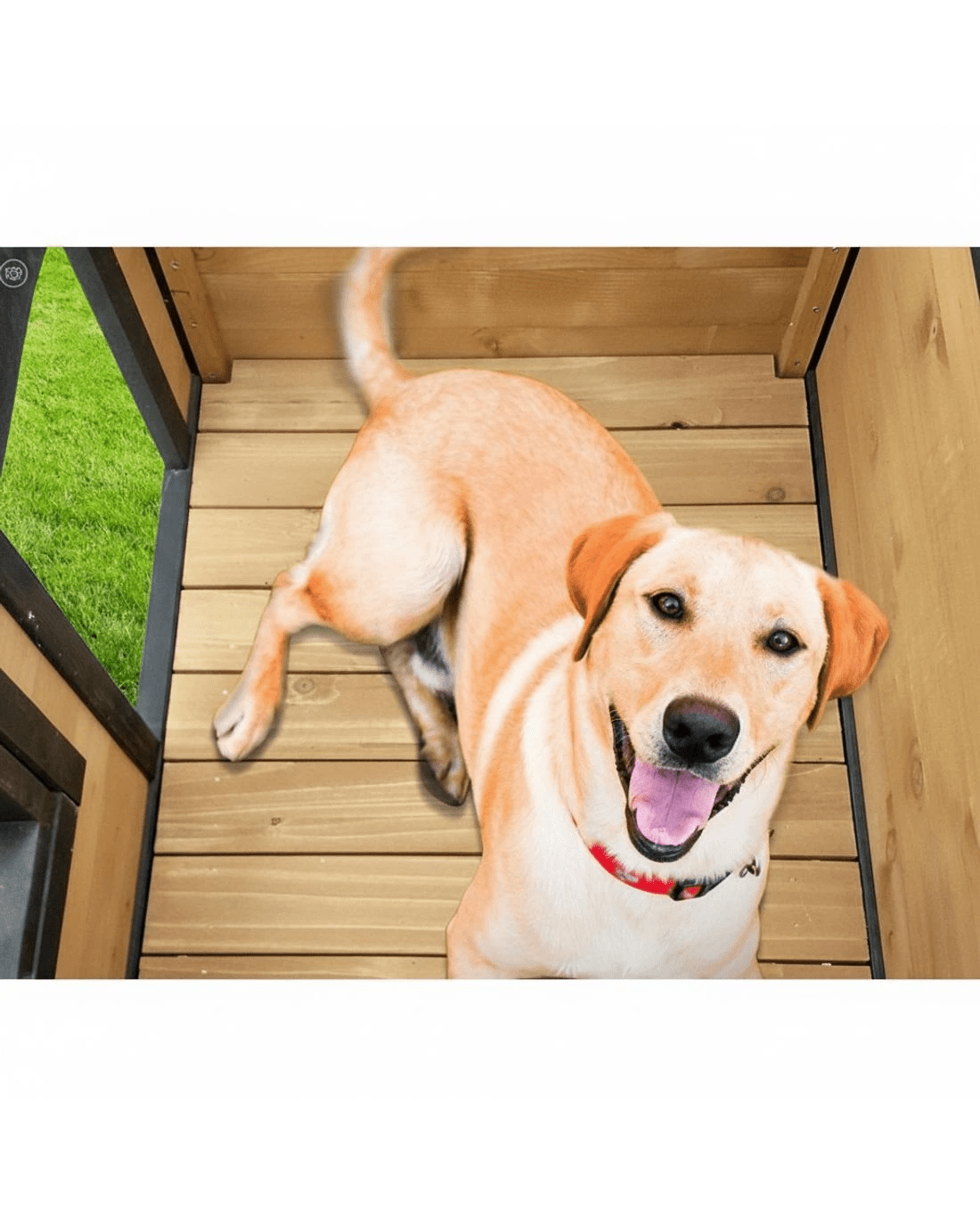 This quality Fir wood built dog kennel fits larger size dogs and is weatherproof and UV stabilized. Vents at the front and rear help to ensure that your pet is kept well ventilated with fresh supplies of clean air.