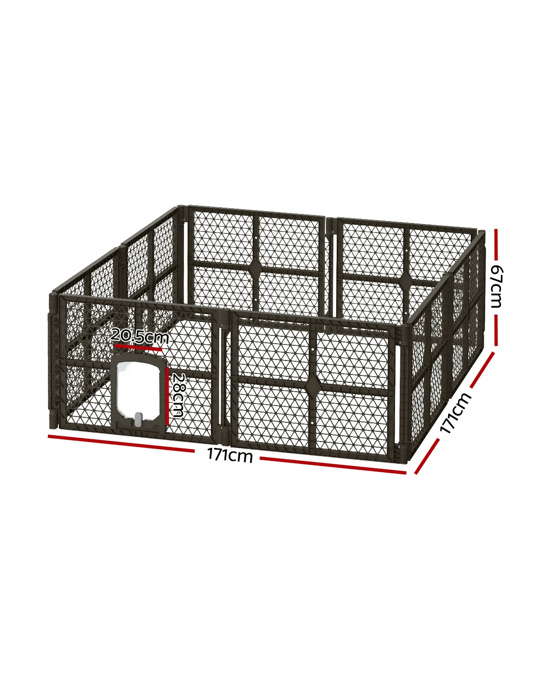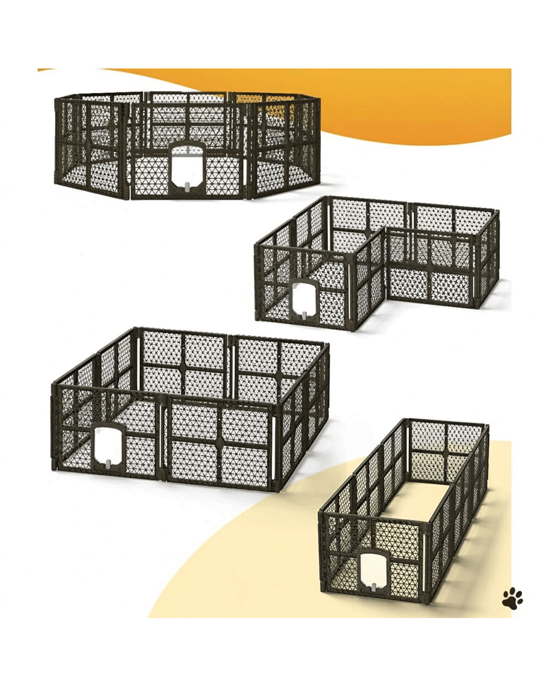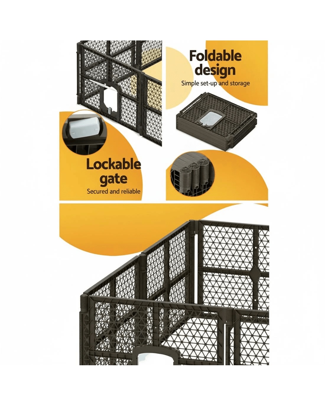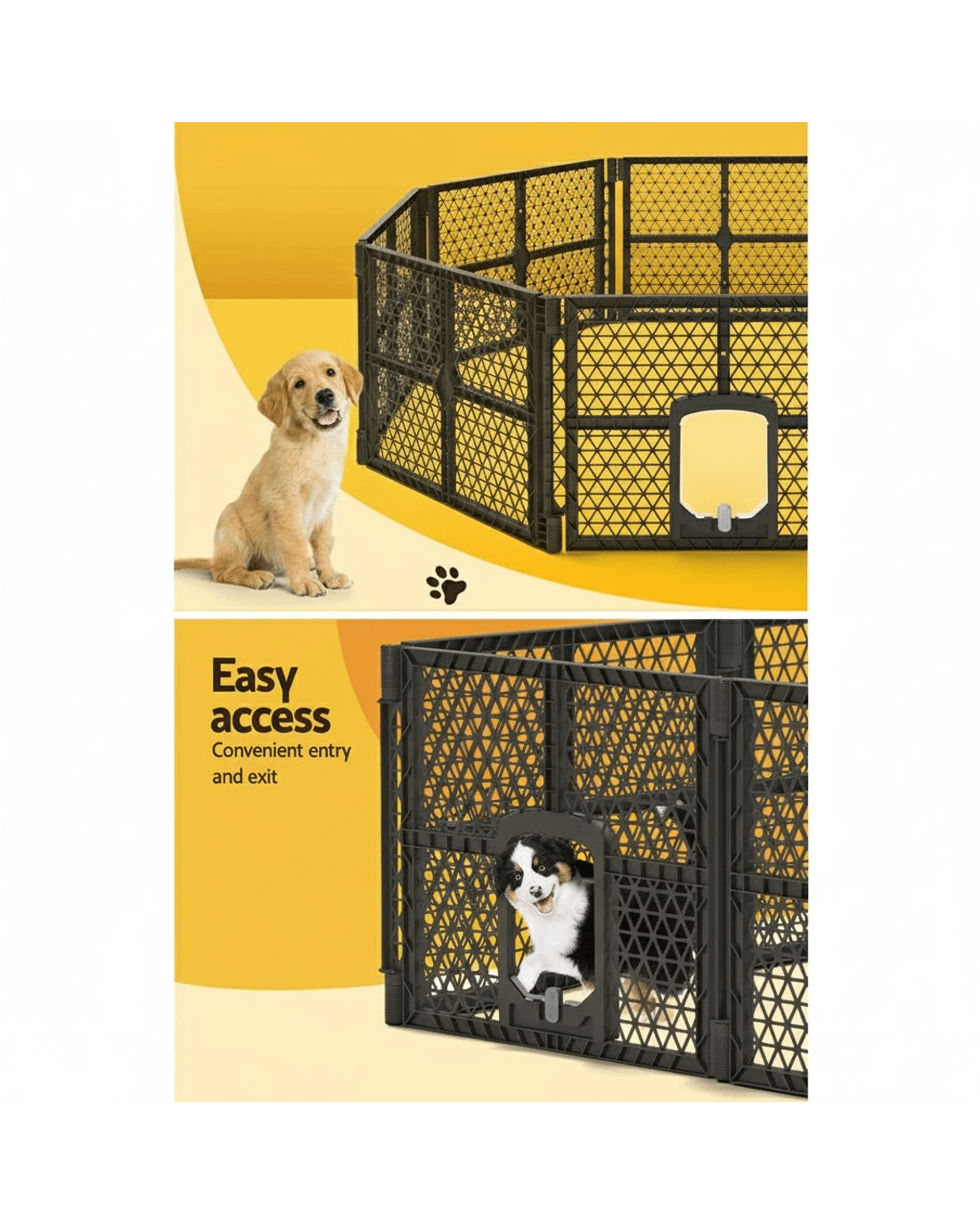 Give your beloved pets a safe and comfortable place to play, sleep, rest, and relax. The i.Pet's pet playpen has a spacious area to move around freely. This prevents them from feeling trapped or restricted. Not just for dogs, this pet playpen makes a great play area for rabbits, cats, and guinea pigs too. It's constructed from a sturdy PP plastic material for durable and long-lasting use, and the panelled sidewalls allow proper airflow and ventilation. Our pet playpen is available in various shapes: octagon, square, rectangle, and other shapes. It features a convenient entrance that allows easy entry and exit. It has a small lockable gate for small and medium-sized pets. You can even open the panel for larger dogs. It comes with eight large panels that are easy to install and the foldable design makes for easy storage. You can even carry it wherever you go. Bring this pet playpen today. Your pet will love and cherish it always.