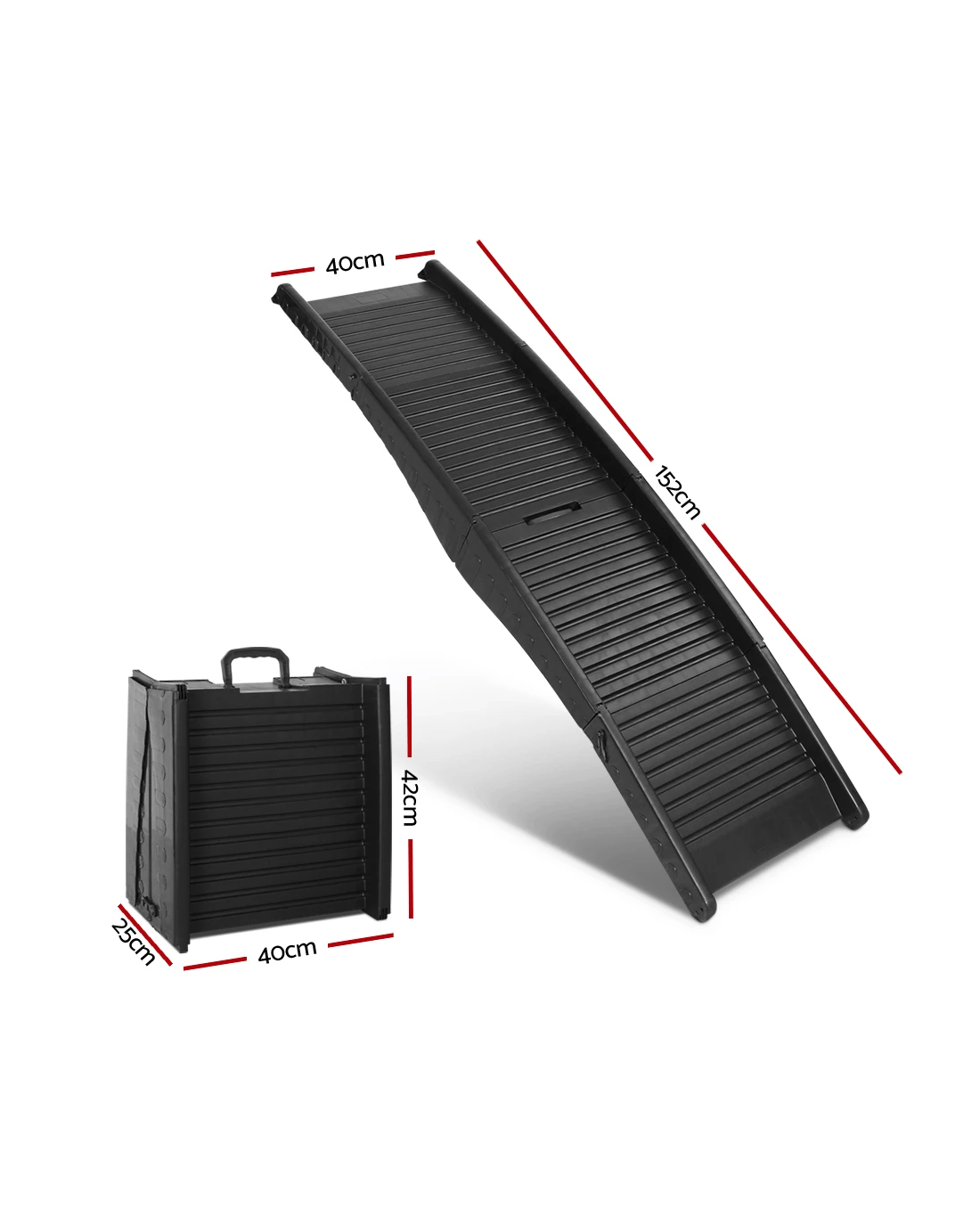 Need help getting your pet dog up on the bed or couch or into the vehicle? Help is at hand with the i.Pet Foldable Pet Ramp. Comprising a foldable 3-part section, the Pet Ramp is made of durable, heavy-duty plastic to handle even the most robust use.The ramp has a weight capacity of up to 80kg. Just perfect for any dog, big or small, young or elderly and everything else in between. Not least, the Ramp can be used with any type of vehicle for total convenience.