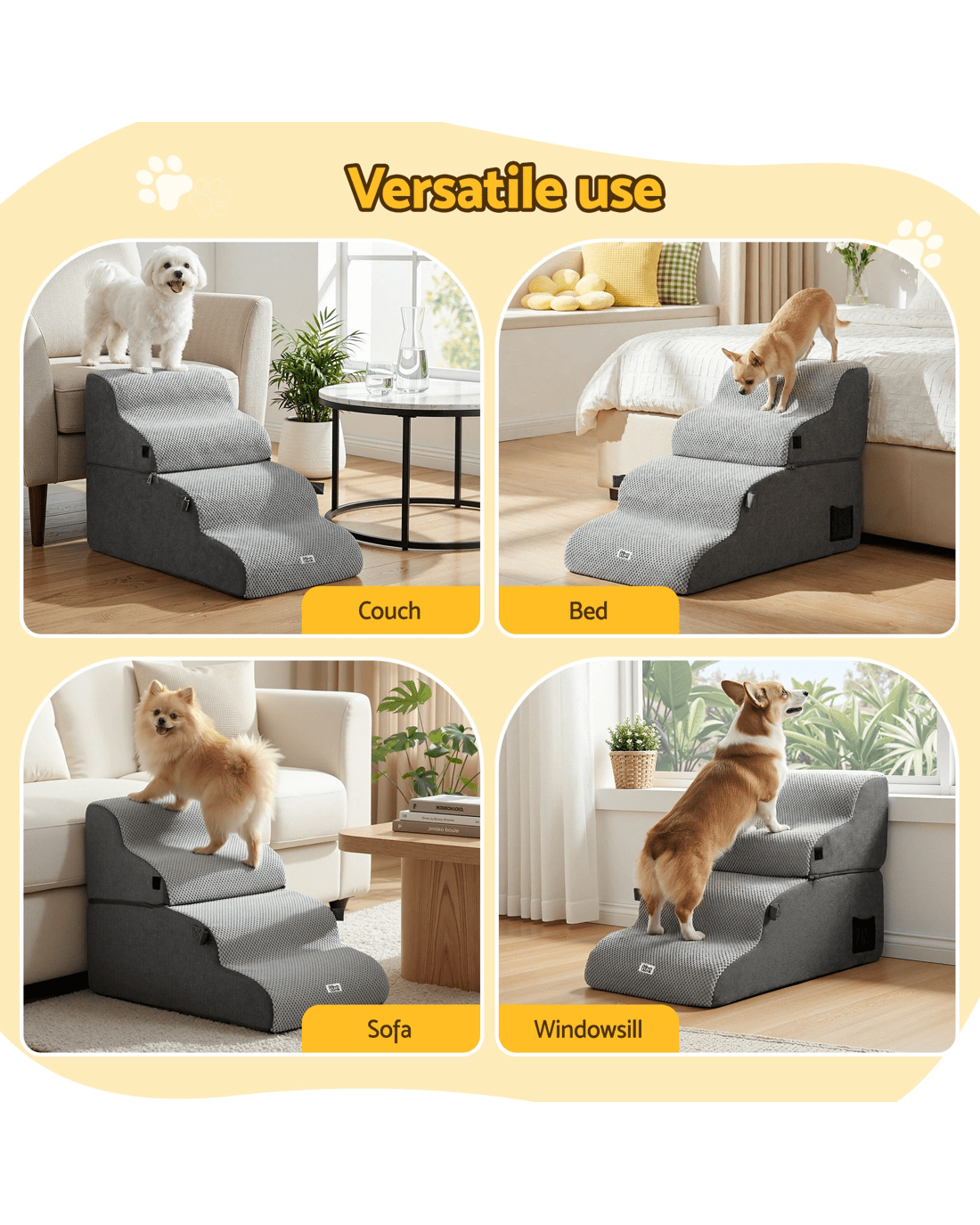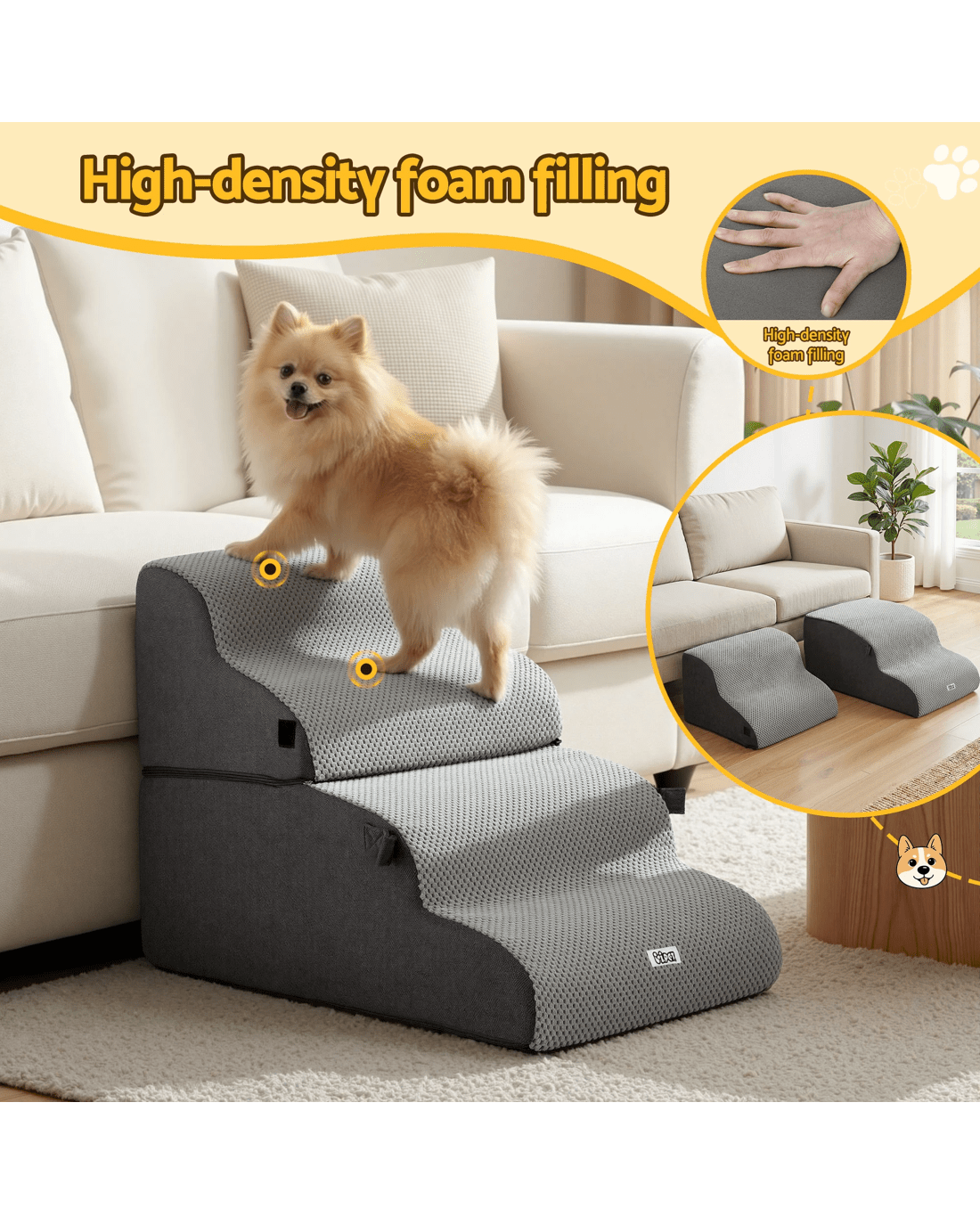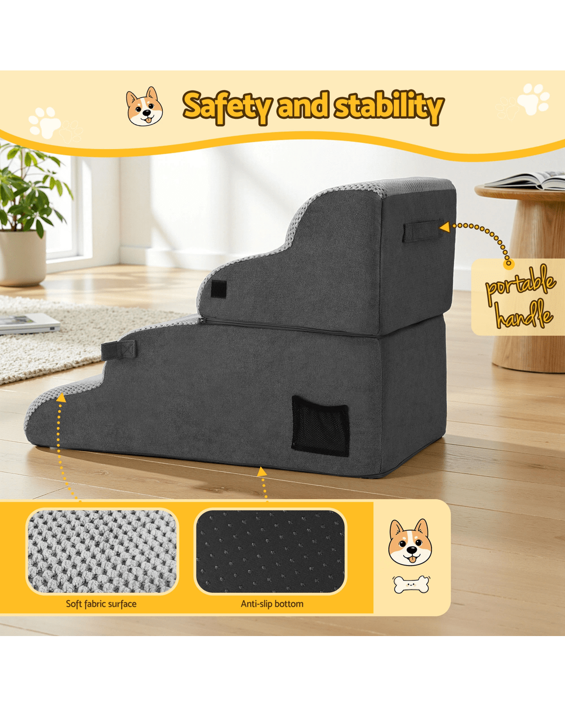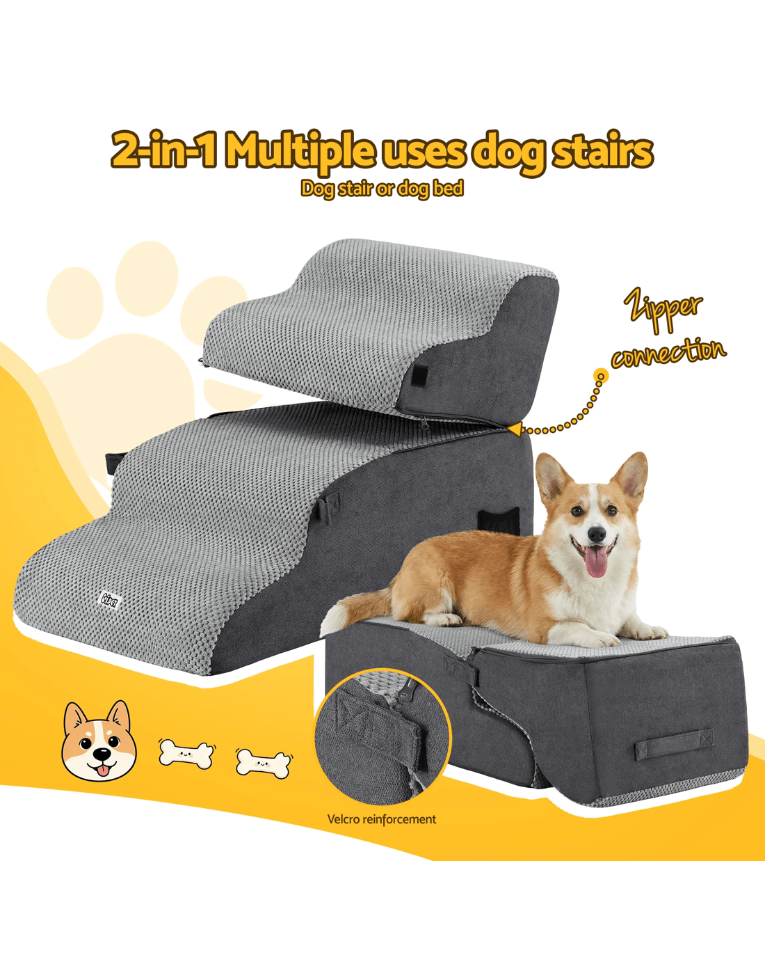 i.Pet Dog Stairs and Bed 2-in-1 Sofa Car Foam Non-Slip Washable Pet Stairs - Grey