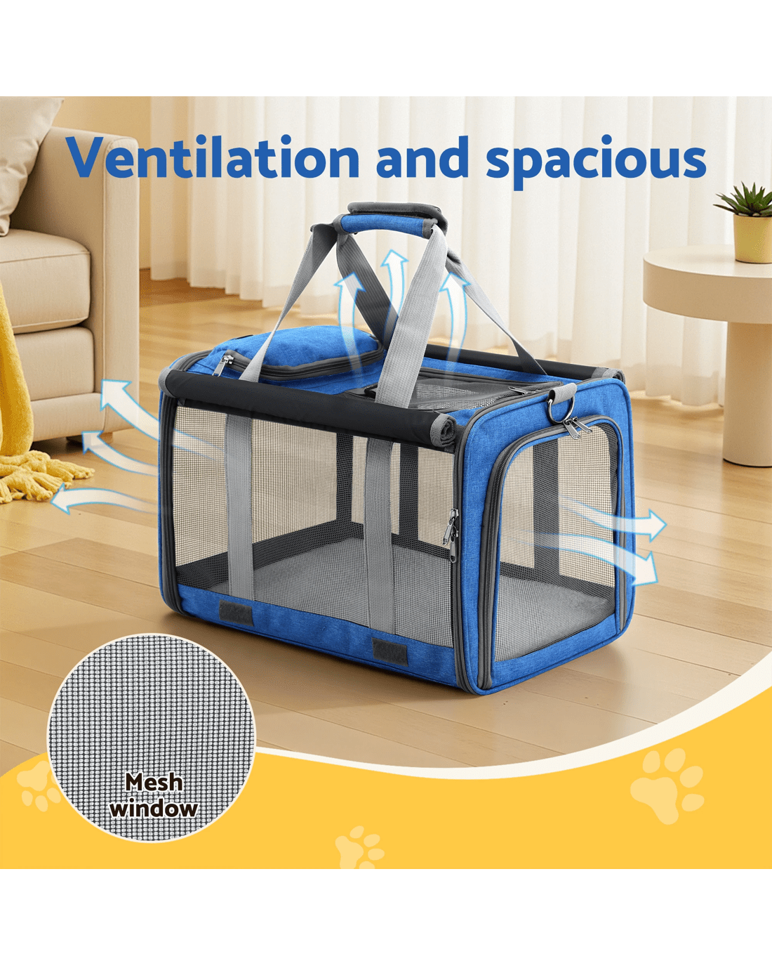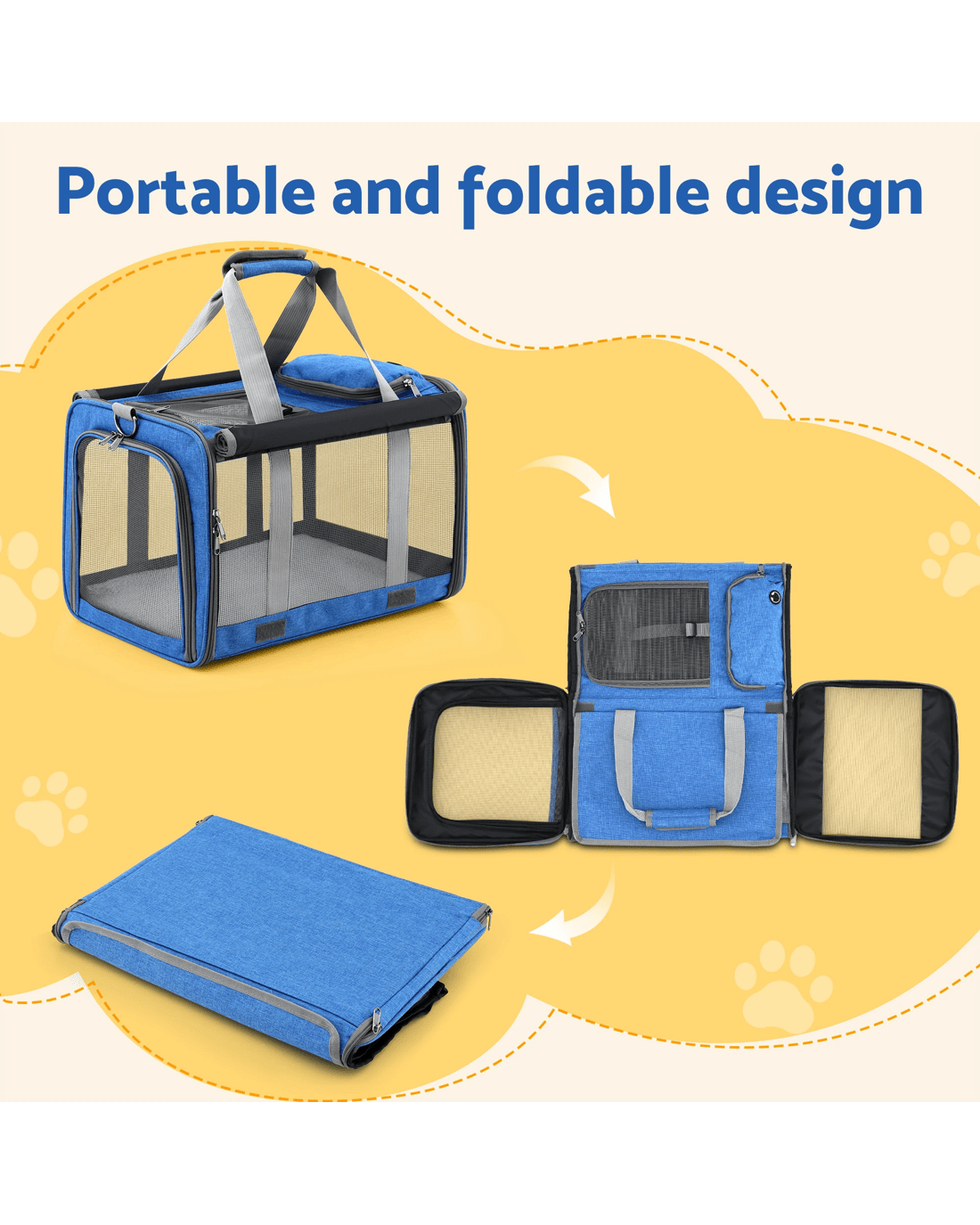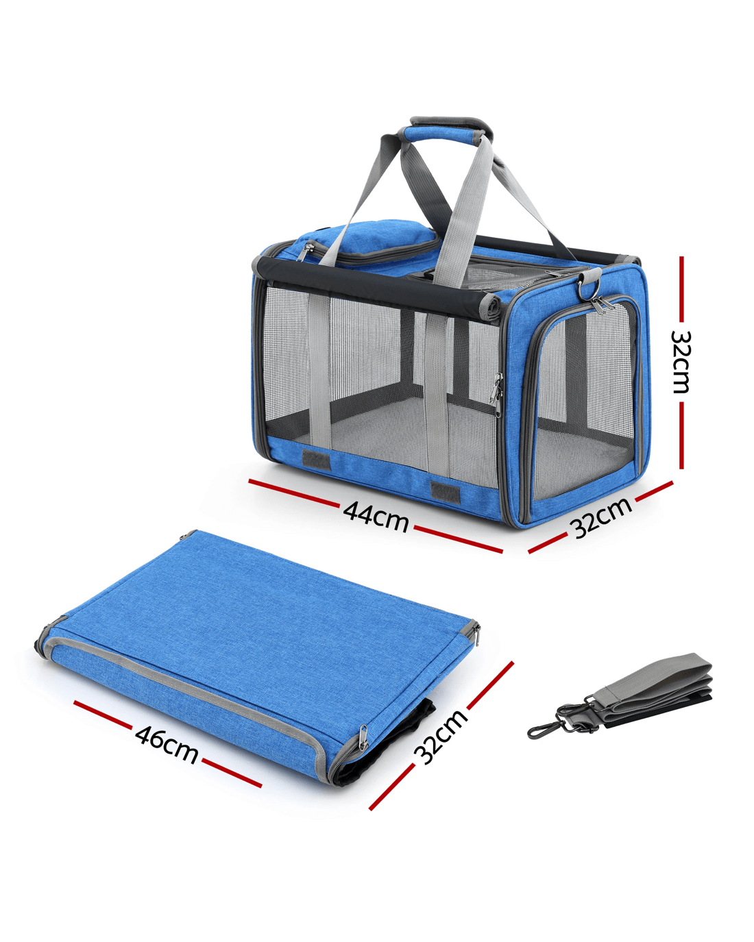 i.Pet Pet Carrier Bag Foldable Dog Cat Durable Crate Travel Cage Portable Car - Blue