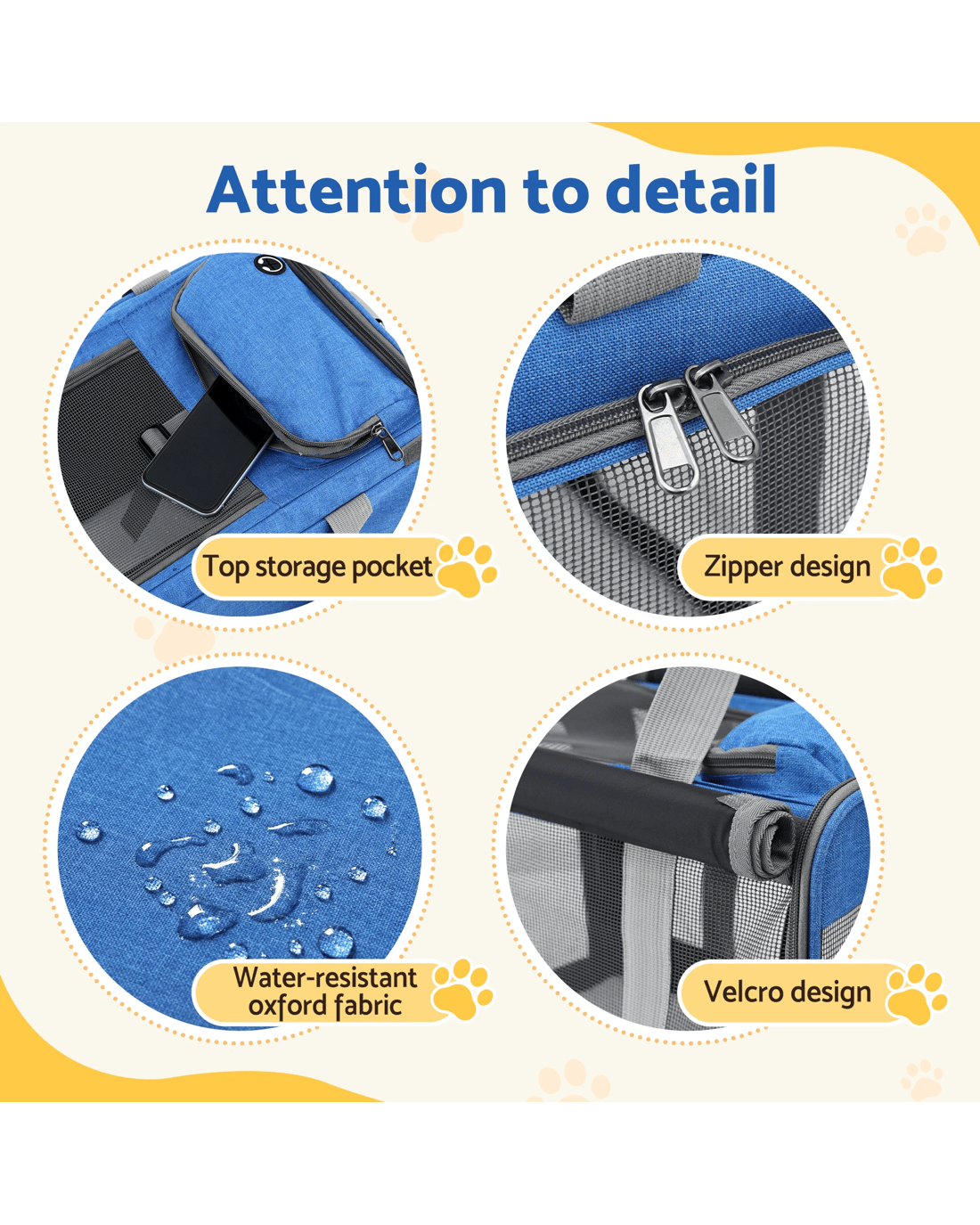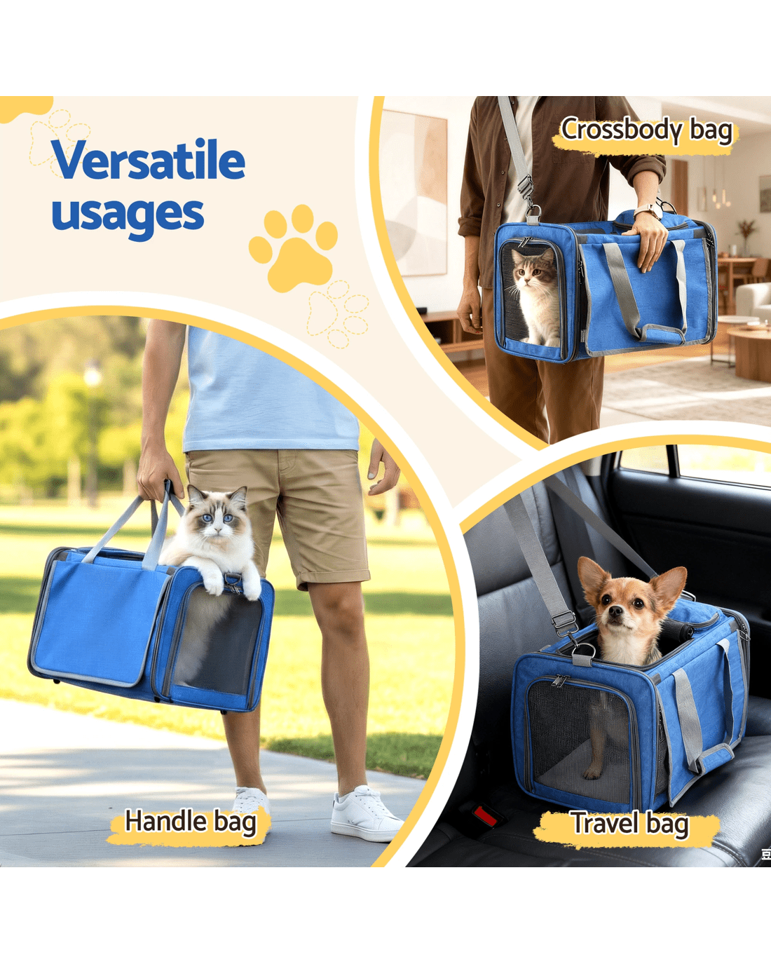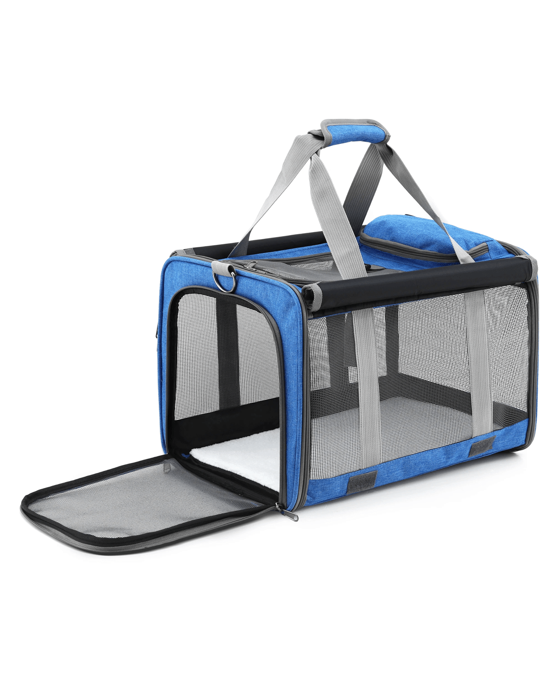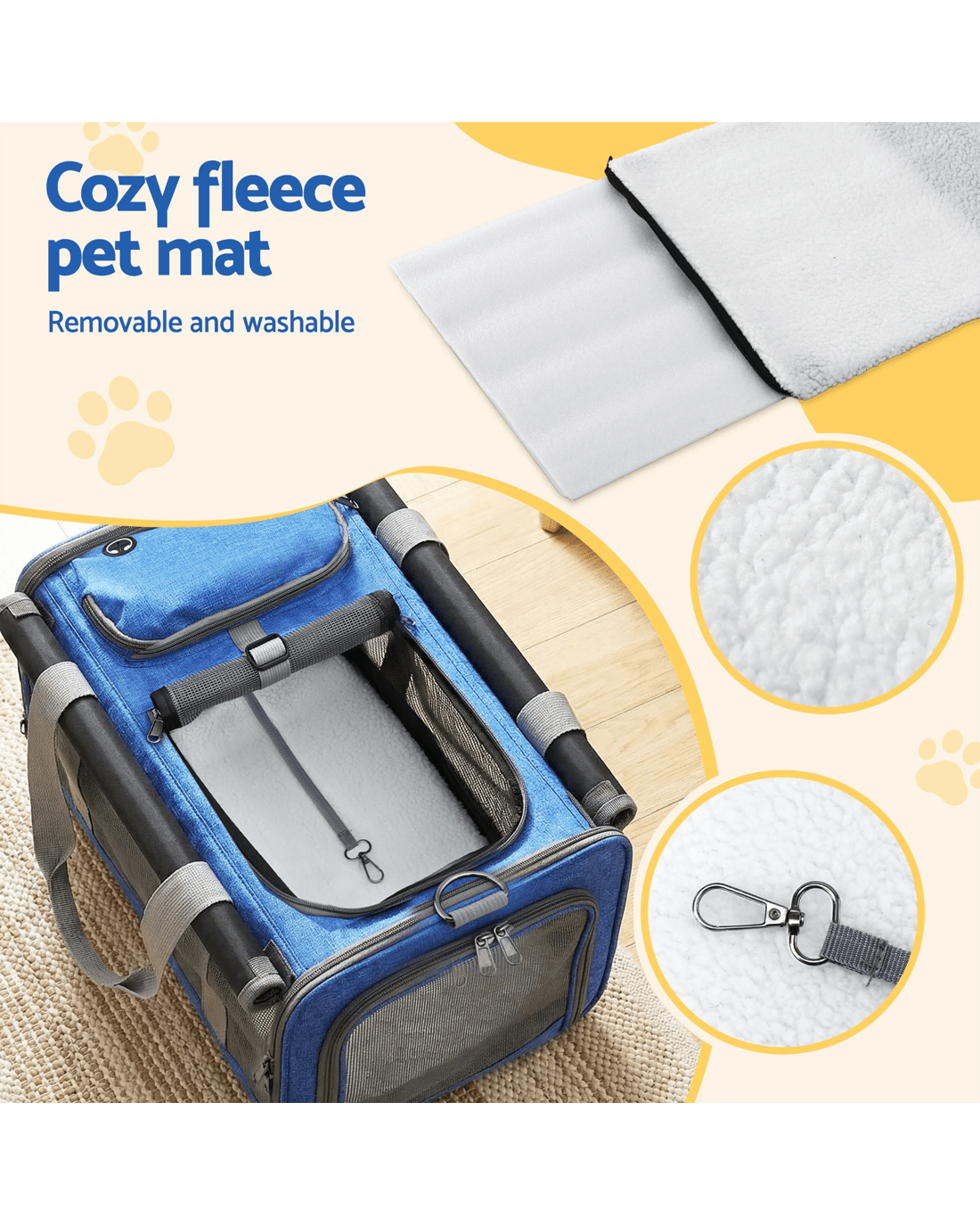 i.Pet Pet Carrier Bag Foldable Dog Cat Durable Crate Travel Cage Portable Car - Blue