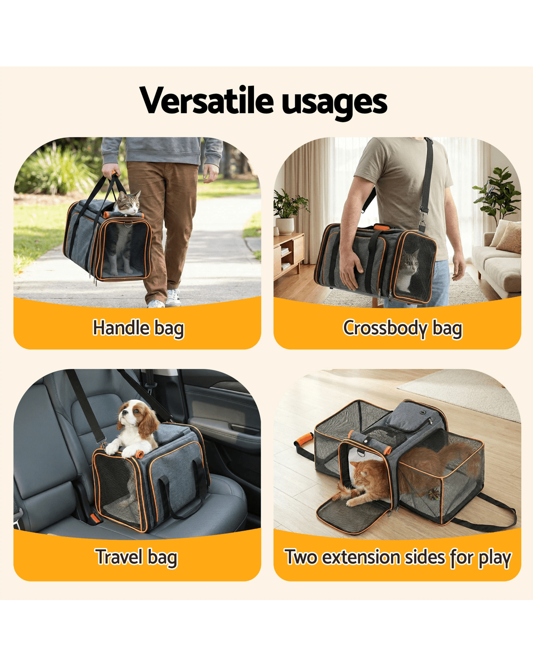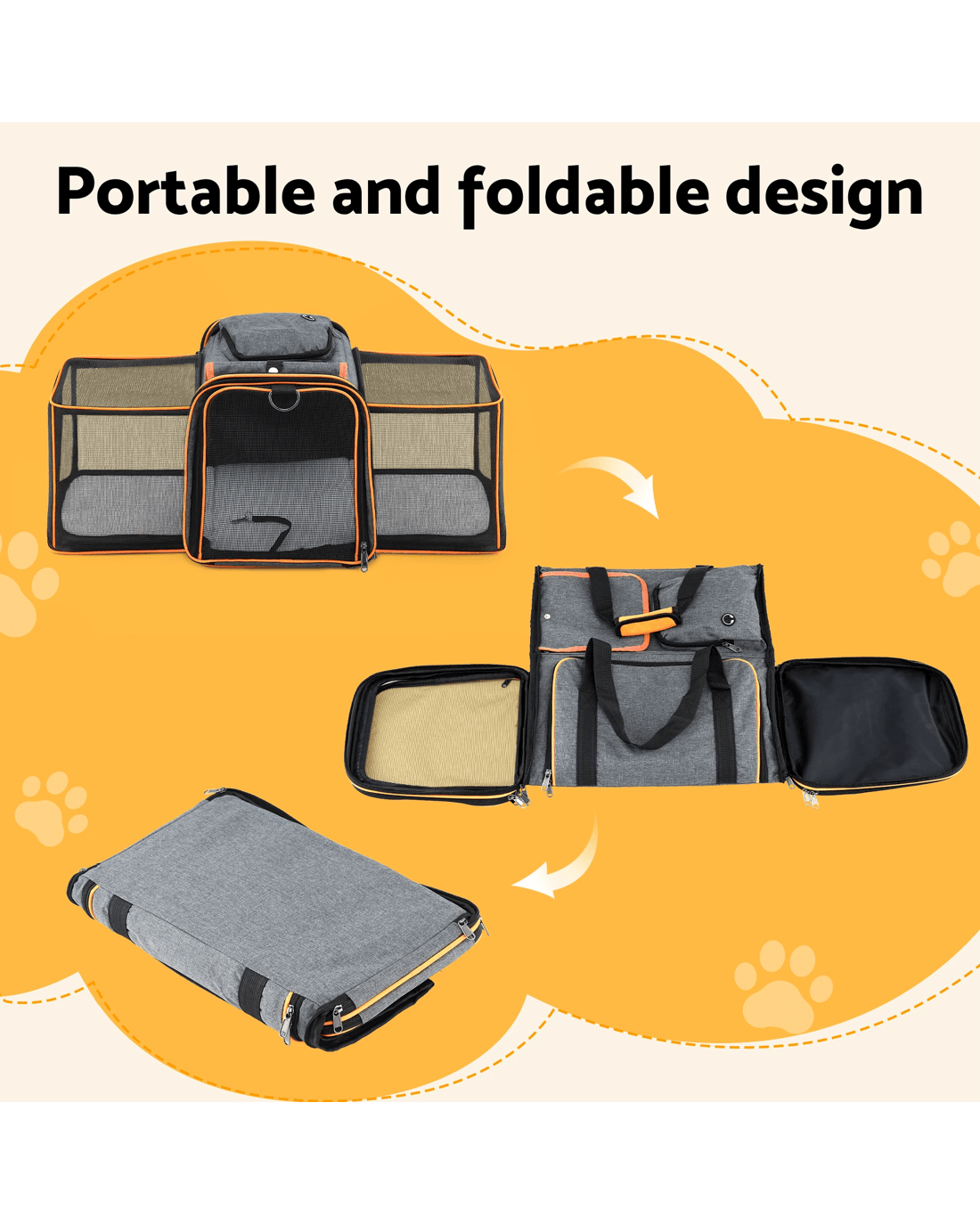 Sold by Aisle Sixi.Pet Pet Carrier Bag Foldable Expandable Dog Cat Travel Cage Portable Car Kennel - Multi