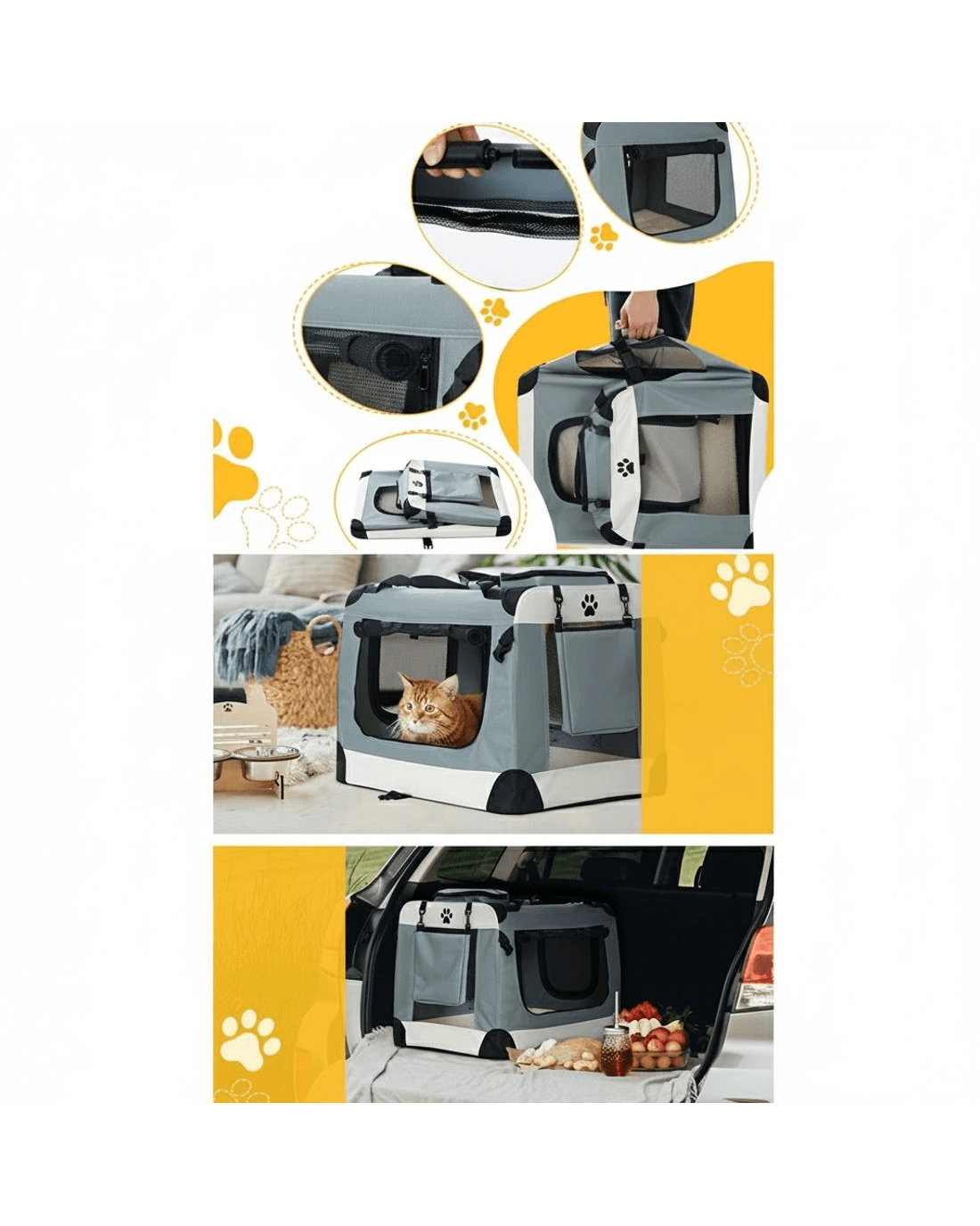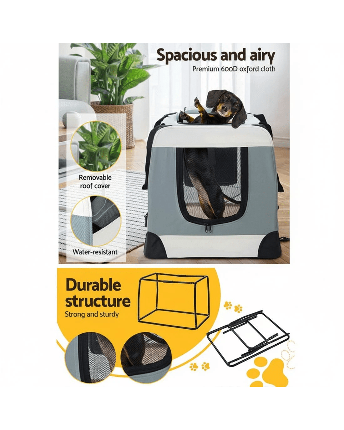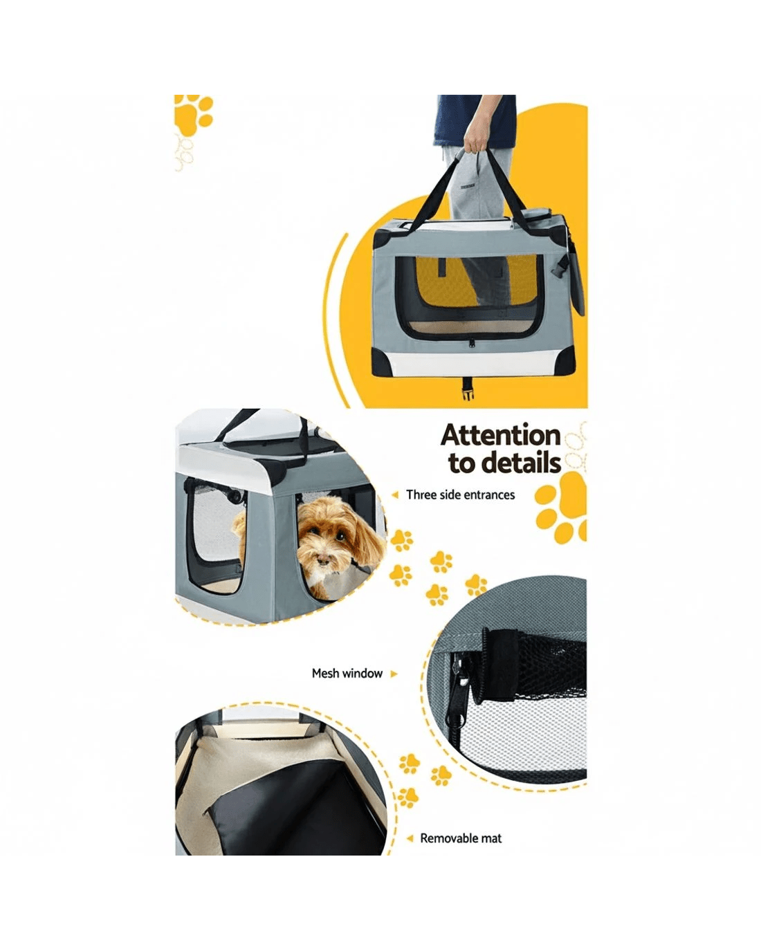 Going on holiday, to the vet, or to a boarding facility? Travelling with your furry friend can be stressful. With our i.Pet's Pet Carrier, it's easy to travel with your furry friend. It makes a smart and safe solution to taking your pets outdoors. Our pet carrier has ample space for your dear pets to sit and rest, which prevents them from feeling trapped, anxious, or restricted. It's constructed from a durable 600D oxford cloth for durable and long-lasting use, and the mesh sidewalls with three side see-through windows allow proper airflow and ventilation. The three access doors with zippered openings enable easy entry and exit. You can even remove the top roof cover for added comfort and convenience. Our i.Pet's pet carrier boasts a washable design with a removable mat and cover that makes it easy to keep clean. It features a portable design with an easy set-up and foldable structure, a durable handle, and a top and side storage pocket that makes it easy to carry wherever you go. Bring this pet carrier today for your convenience and beloved pet's comfort.