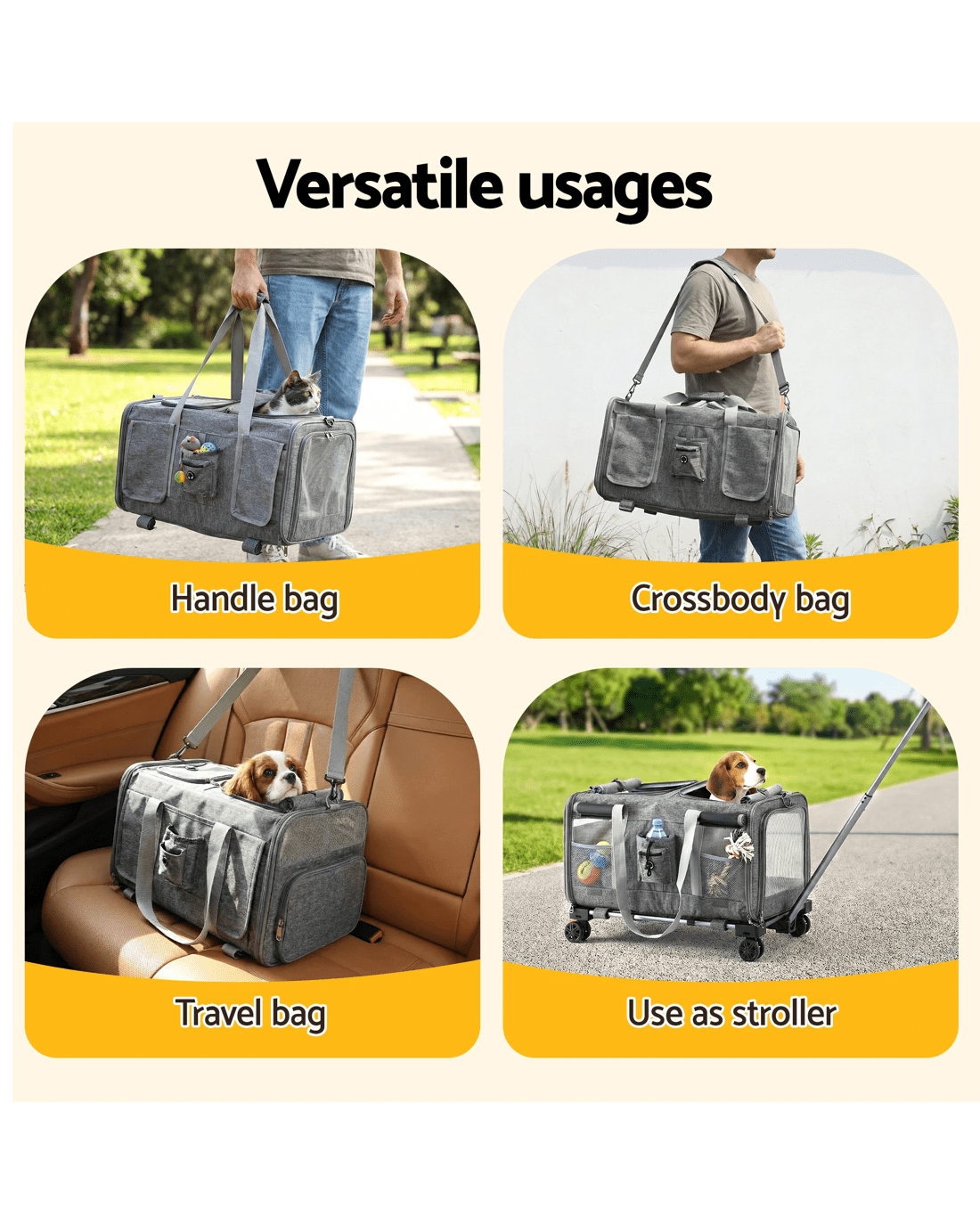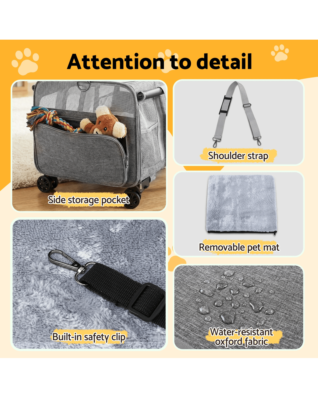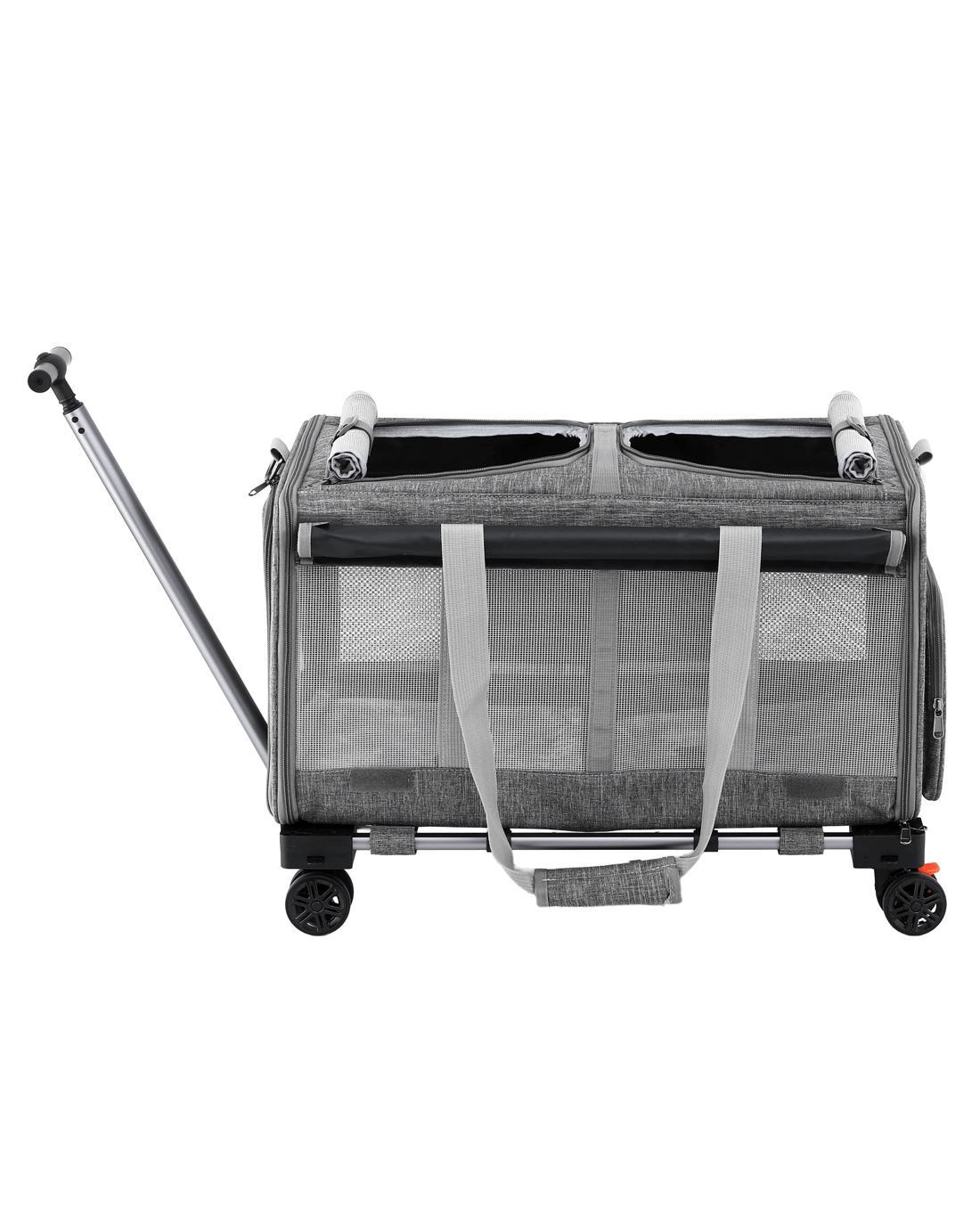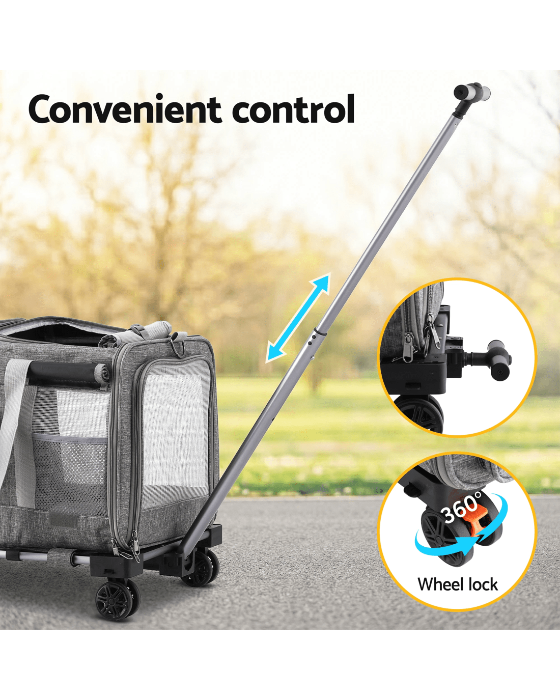 For the pet owner who needs a reliable and easy way to transport their larger furry mate, the i.Pet Premium Pet Trolley Carrier is a game-changer. Combining the durability of a high-quality carrier with the convenience of a smooth-rolling trolley, this is the perfect solution for vet visits, moving house, or any journey across the landscape.Heavy-Duty and Effortless Mobility Designed to handle pets up to a substantial 50kg, this carrier is built with a robust aluminum frame and covered in high-quality Oxford fabric. The standout feature is the effortless mobility provided by the Telescopic Handle and 360° Swivel wheels, allowing you to push or pull your pet with minimal effort, even when fully loaded.Versatile and Comfortable Design This carrier offers Versatile usages, functioning as a trolley, a traditional carrier with a Durable handle, or even a backpack with the Adjustable shoulder strap (approx. 76-115cm). Inside, your pet will enjoy a Ventilation and spacious environment, thanks to the breathable and see-through mesh window. The removable and washable mat ensures a clean and comfortable ride.Safety and Convenience Safety is paramount, which is why the carrier includes a Built-in safety clip to secure your pet. Access is simple with the Smooth and easy to open zipper. When not in use, the Foldable and portable design makes storage easy. This carrier is Washable and easy to clean, making it suitable for both Indoor and outdoor use.