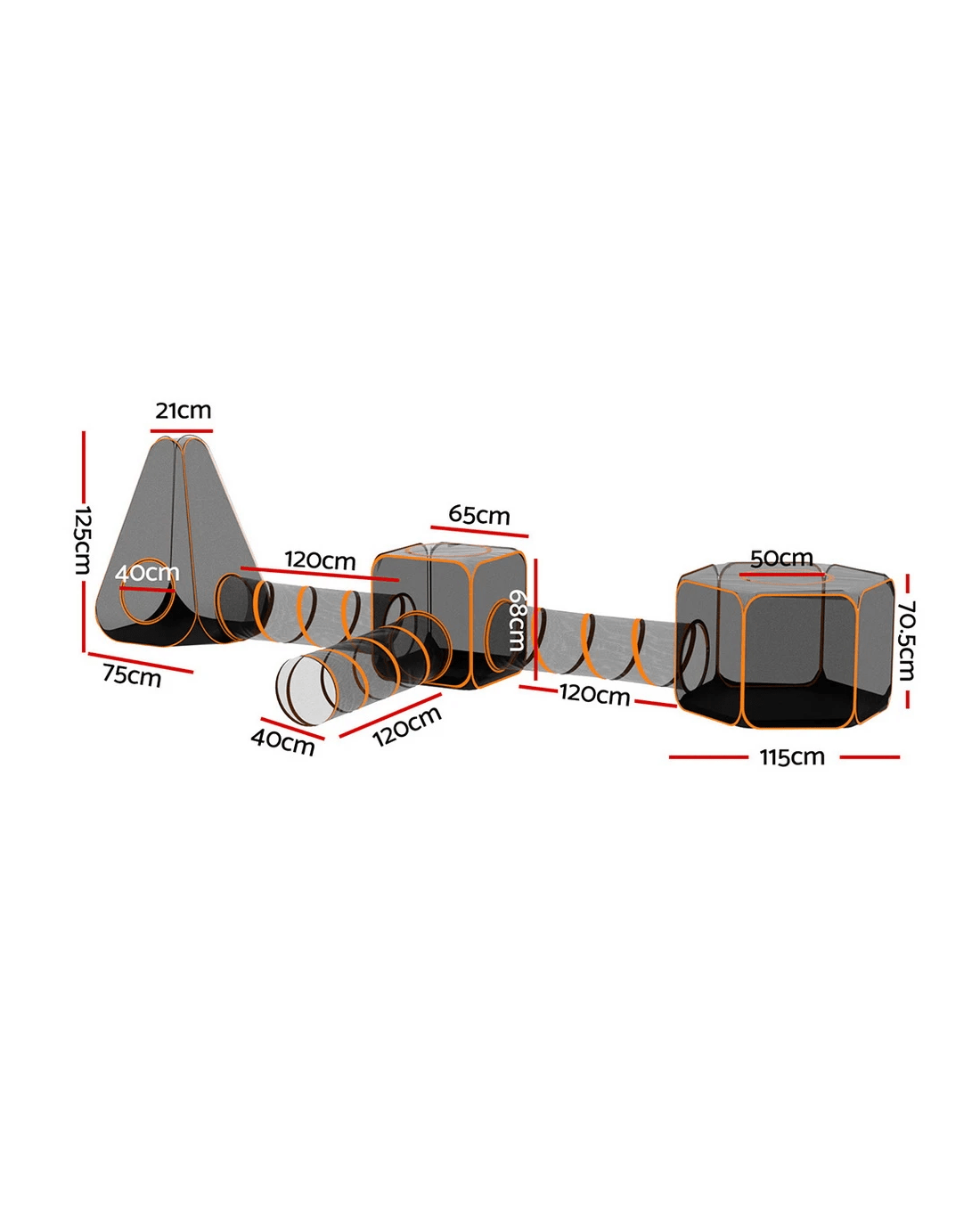 i.Pet Pet Playpen Cat House 6 IN 1 Tent Tunnel Dog Cage Puppy Rabbit Play Portable - Black