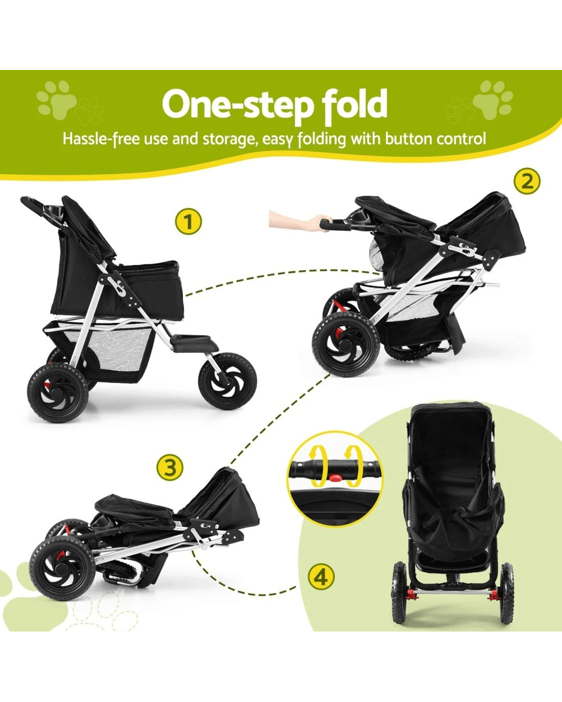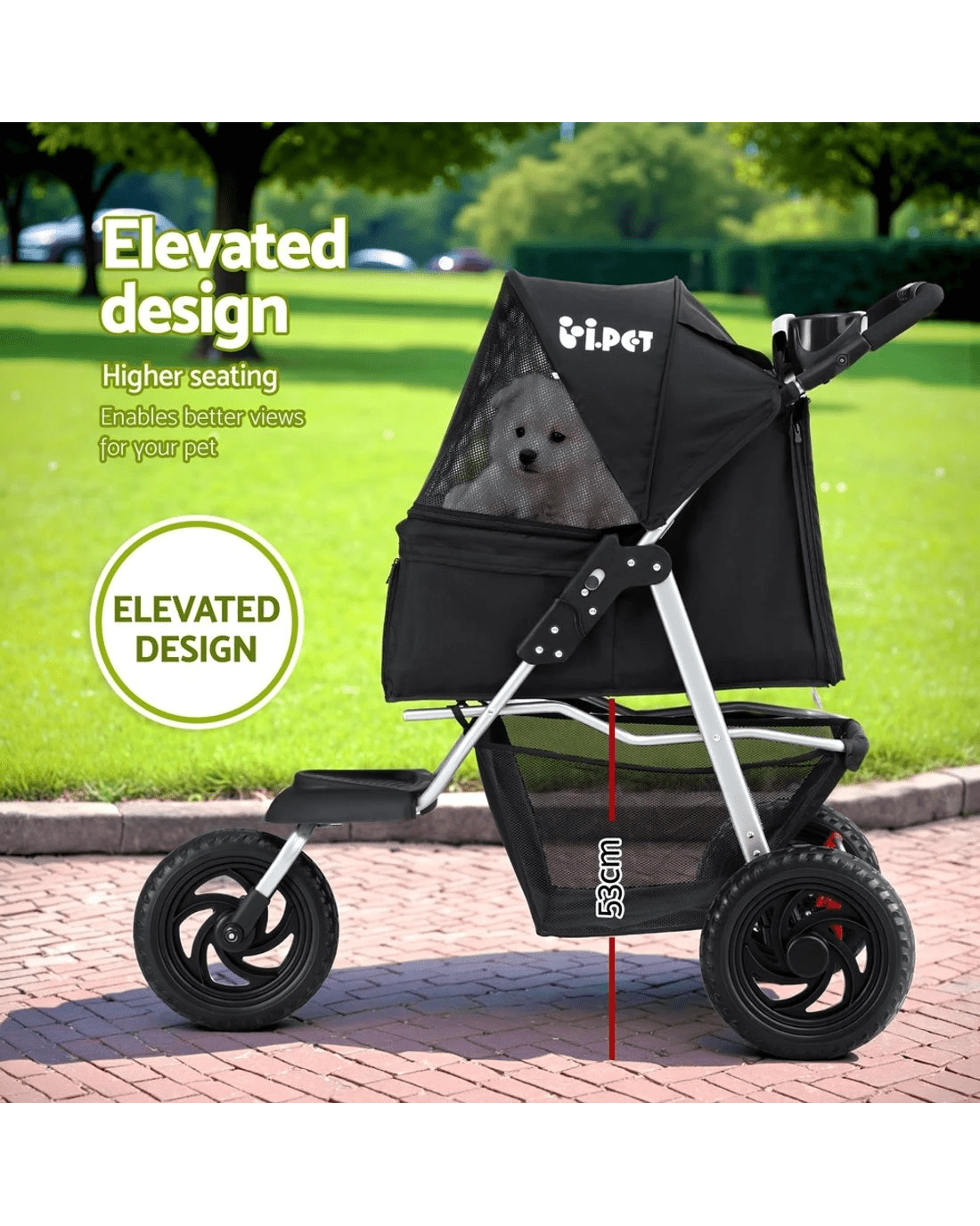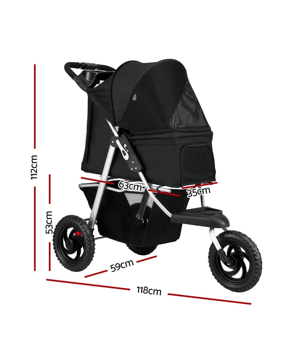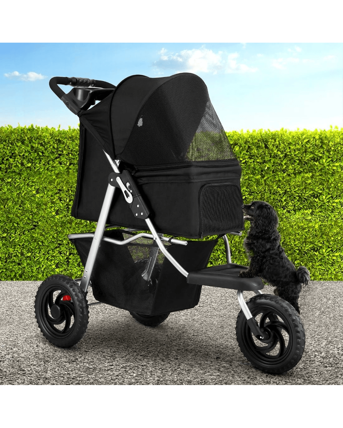 Sold by Aisle Sixi.Pet Pet Stroller Dog Pram Large Cat Carrier Travel 3 Wheels Foldable Pushchair - Black