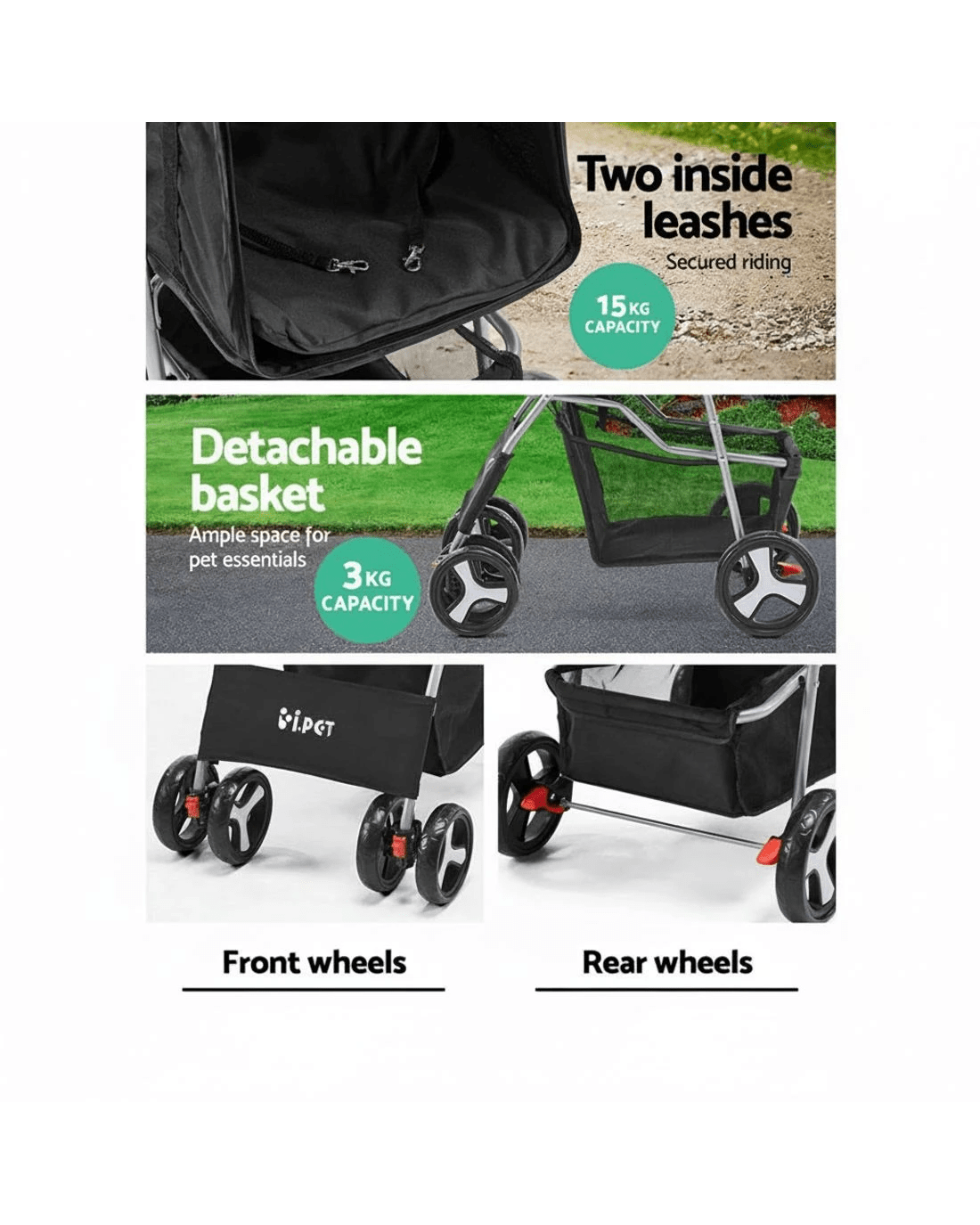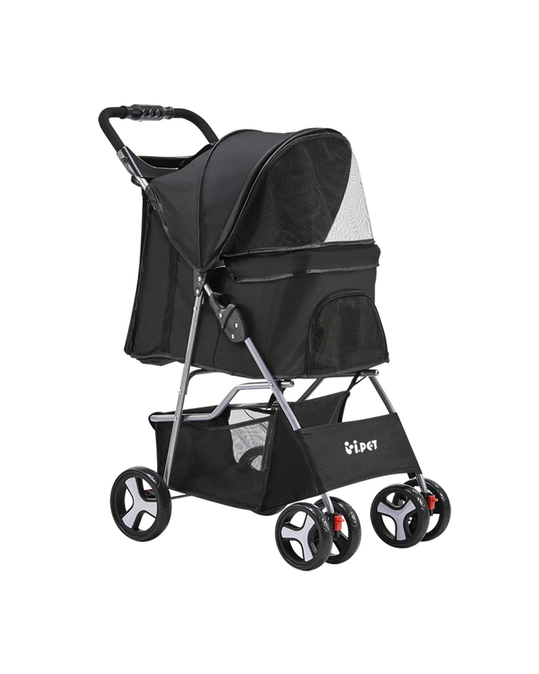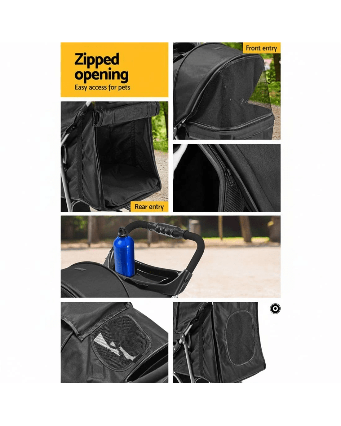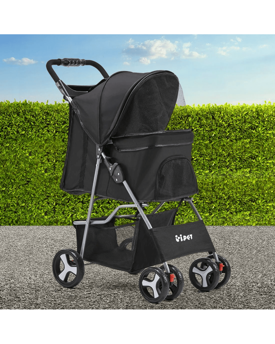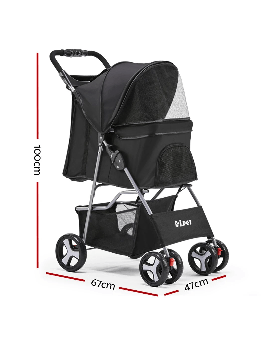 Sold by Aisle Sixi.Pet Pet Stroller Pram Dog Cat Carrier Cage Travel Pushchair Foldable 4 Wheels - Black