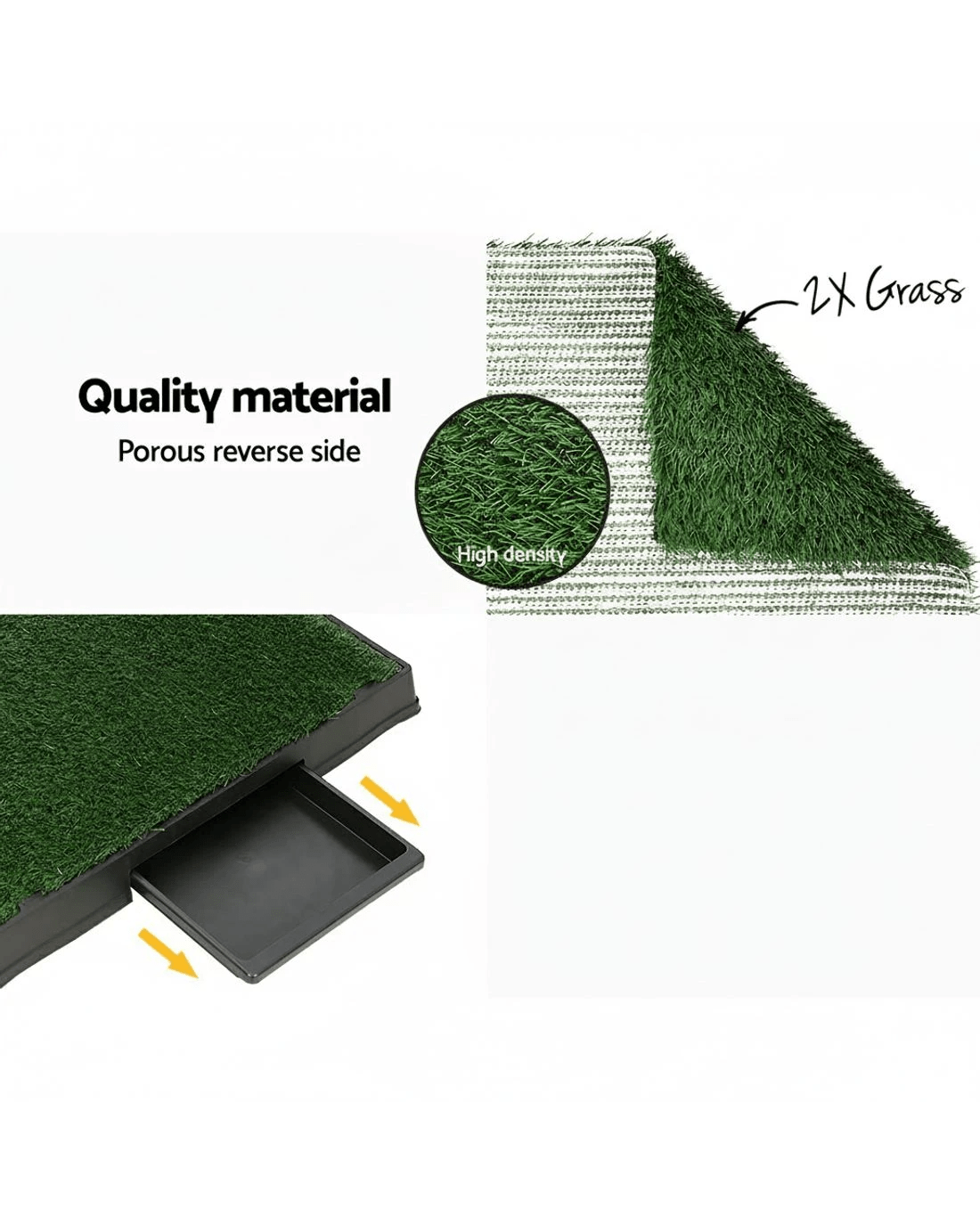 Toilet training your new puppy can be draining, but it doesn't have to be a hassle with the i.Pet Training Tray. With the convenient grassy patch, your dog will quickly associate going to the bathroom with the outdoors. The 3-layer faux-grass material has a high-density top and porous bottom layer, allowing waste to drip into the convenient removable waste tray. The easy-drainage groove design keeps liquid away from your pets, so they stay as clean as your floors. The grass is odourless and non-toxic, making it completely safe for your pet and the rest of the family. Use indoors or outdoors for both training and to protect your existing garden beds. The tray is ideal for young puppies and senior dogs with bladder control issues. With the i.Pet Training Tray, your pet will be toilet trained in no time at all. Get yours today and enjoy an accident-free home.