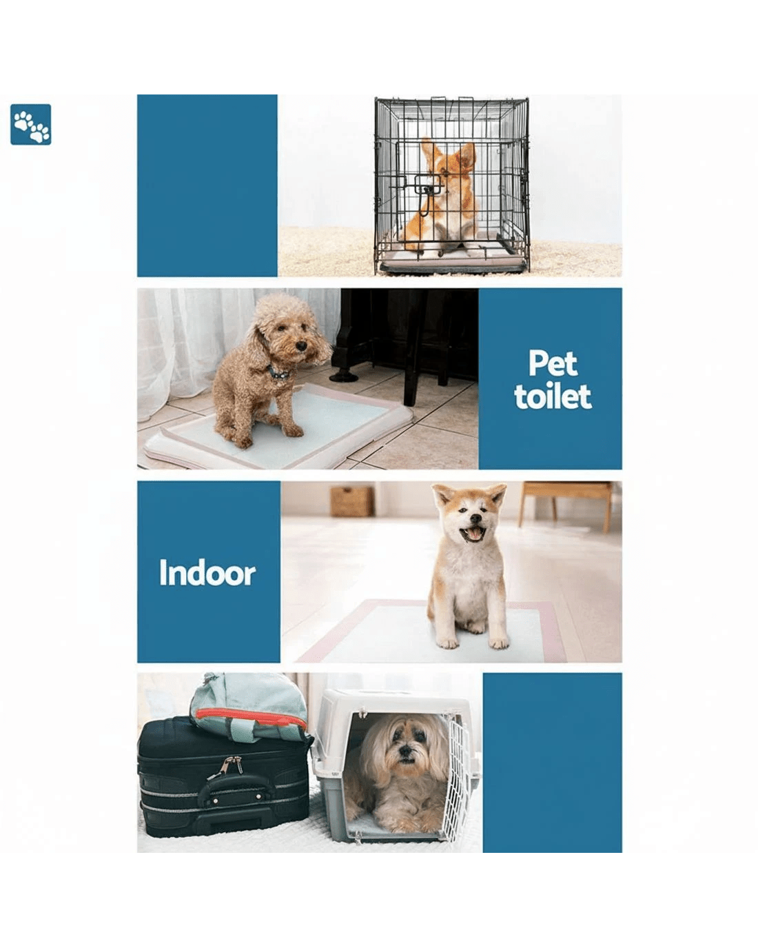Take the hassle out of training your beloved furry friend to potty properly with our i.Pet Pet Training Pads. They are designed to give your pets a visible and consistent spot where they can let out their wastes in a convenient manner. The pads feature five-layer protection that can absorb up to 400ml of liquid, and the leak-proof bottom layer prevents the floor from getting wet or stained. You don't have to worry about the slipping pad as the adhesive tape keeps it secured in place. Not least, the pad is also treated for antibacterial protection and neutralises unpleasant odours that are inevitable from toilet training.