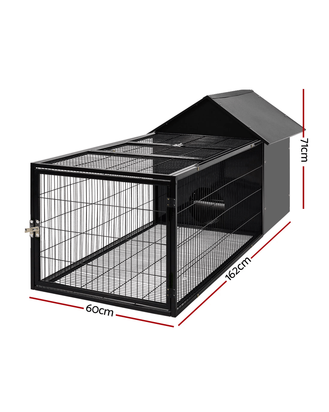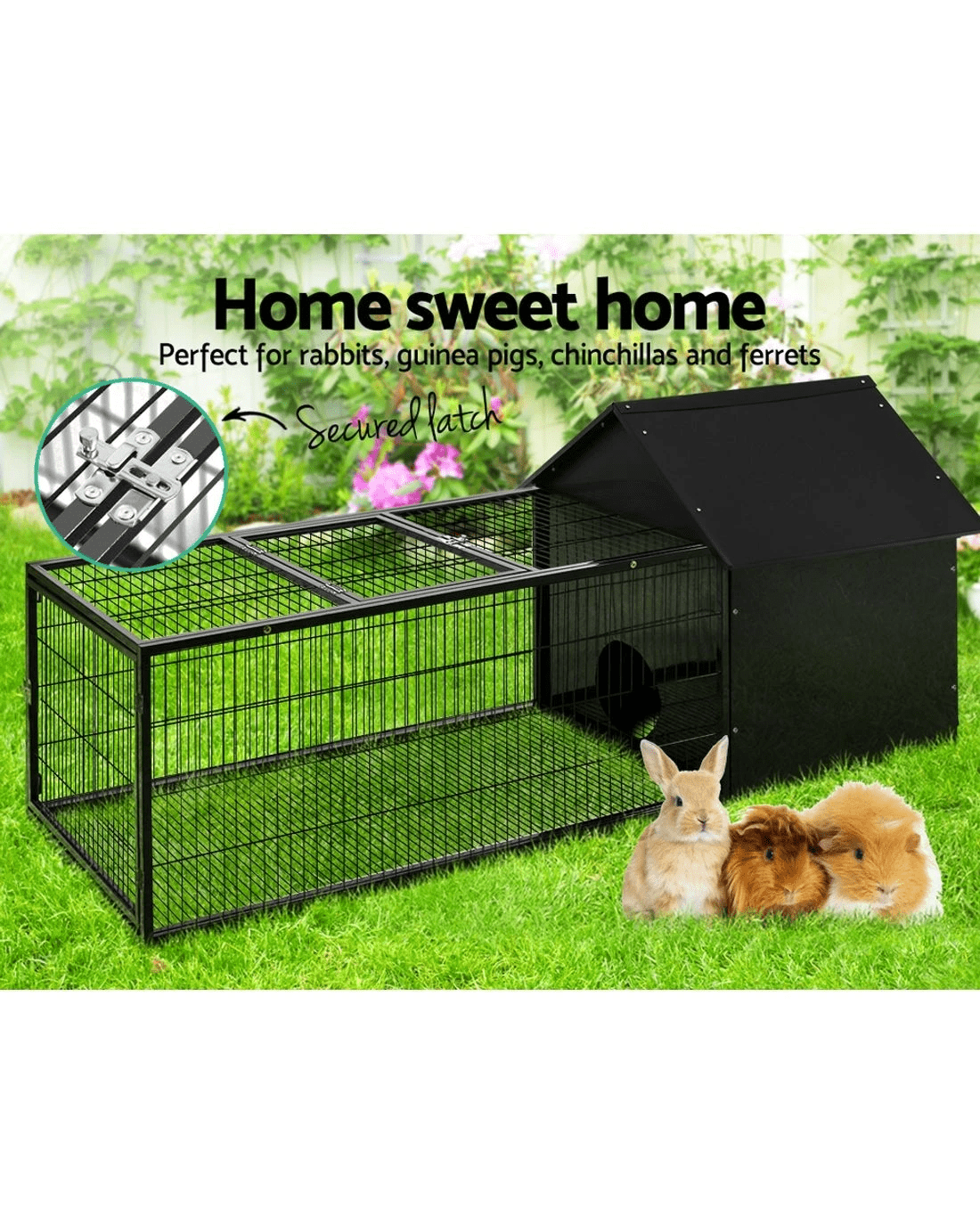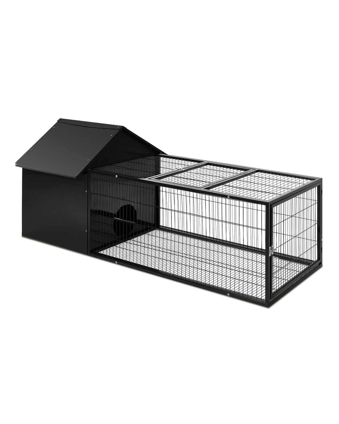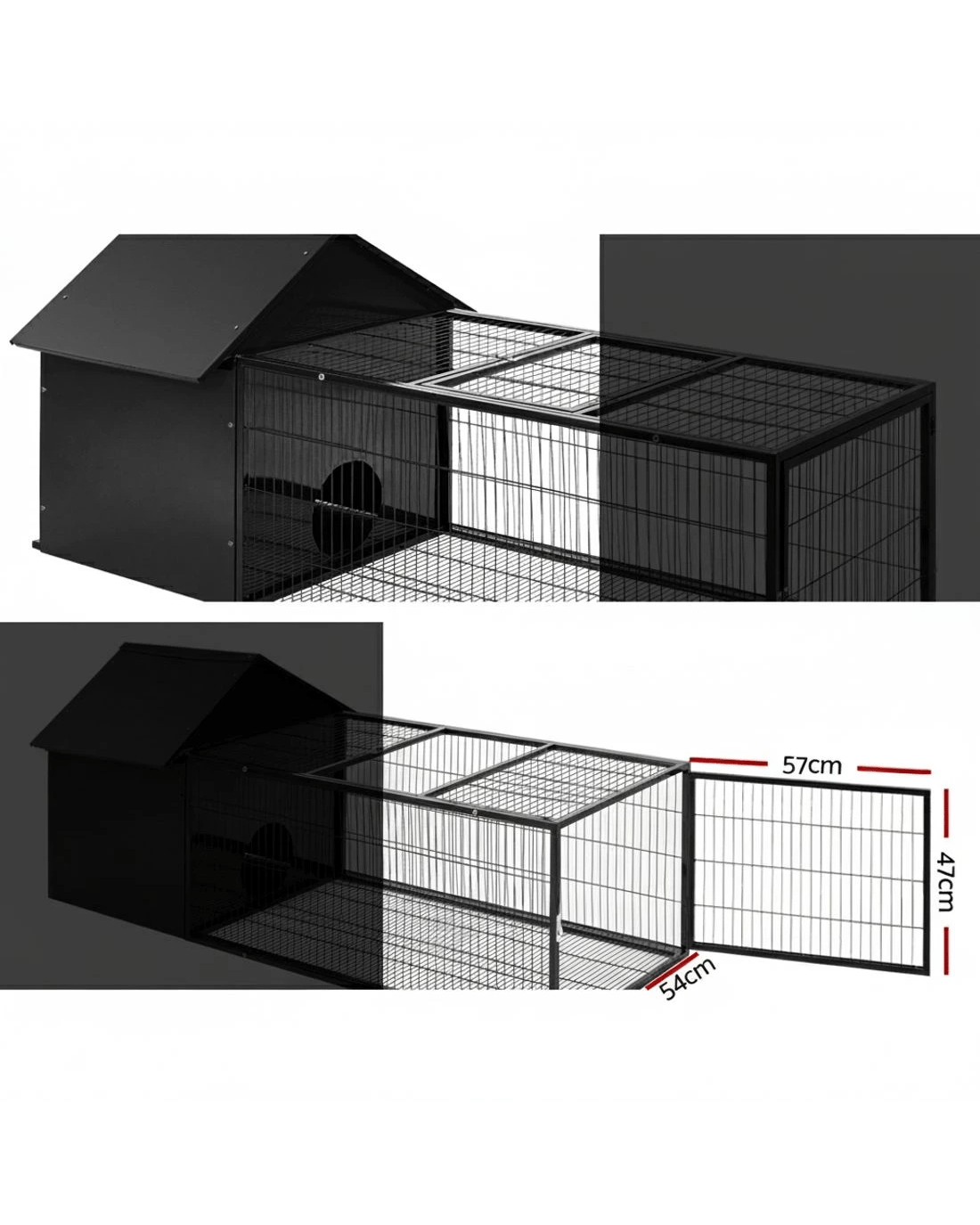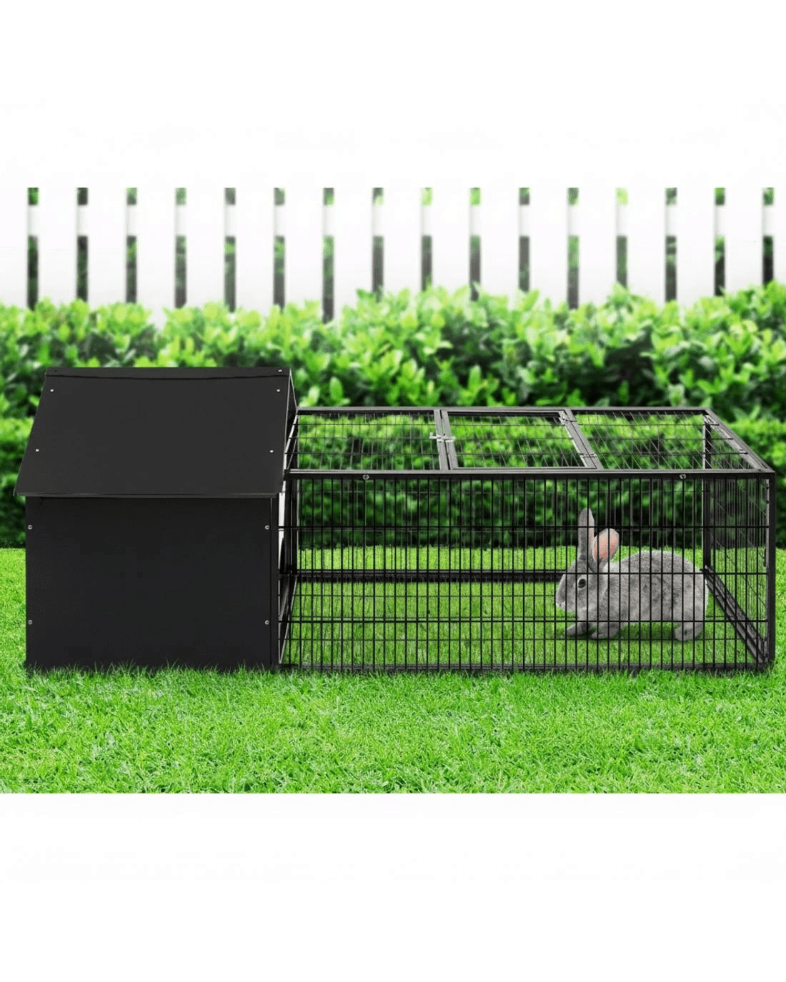 Attached securely to this shelter is a long, weather-roof metal cage that lets your precious ones stretched their legs, have a nibble at the grass or enjoying some fine fresh air and sunshine. The metal cage has lockable openings at the top and front to get your pets in and out in a jiffy or to feed them. Not least, the chew-proof metal frame ensures no easy escape for your pets or unwelcomed break-ins by predators.