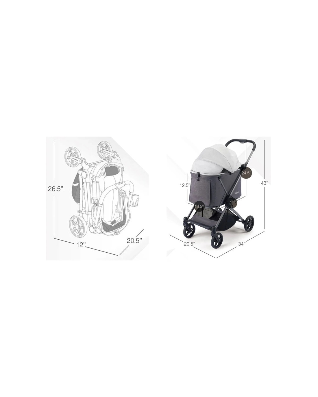 The stroller features an instant folding mechanism that allows you to fold it smoothly with a push of the handle, making storage and transport effortless. Its elevated cabin design provides your pet with ample space to sit upright, move freely, or relax comfortably. The high posture-friendly push bar reduces back strain for owners of different heights, ensuring a comfortable walking experience. The large mesh windows promote excellent ventilation and visibility, keeping your pet cool and secure during outings.
