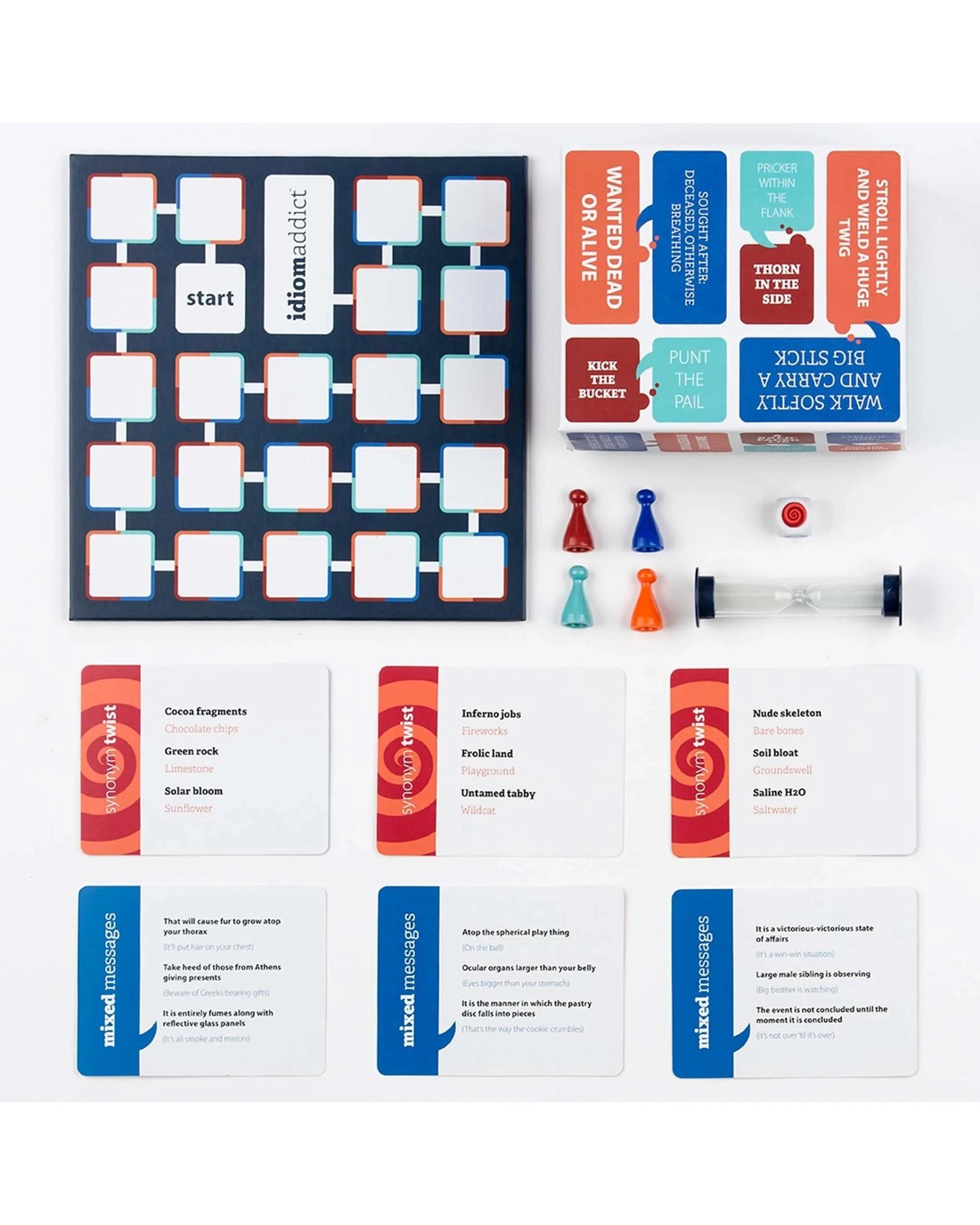 Idiom Addict™ is the party game that challenges players to decipher idioms and common phrases. Correct answers will certainly always be “on the outer edge of your mouth muscle” (tip of your tongue), but in this uproarious game it's how fast you answer which determines who is the “uppermost canine”! (top dog) Ages: 10 + | Players: 4 + | Playtime: 20 Mins +