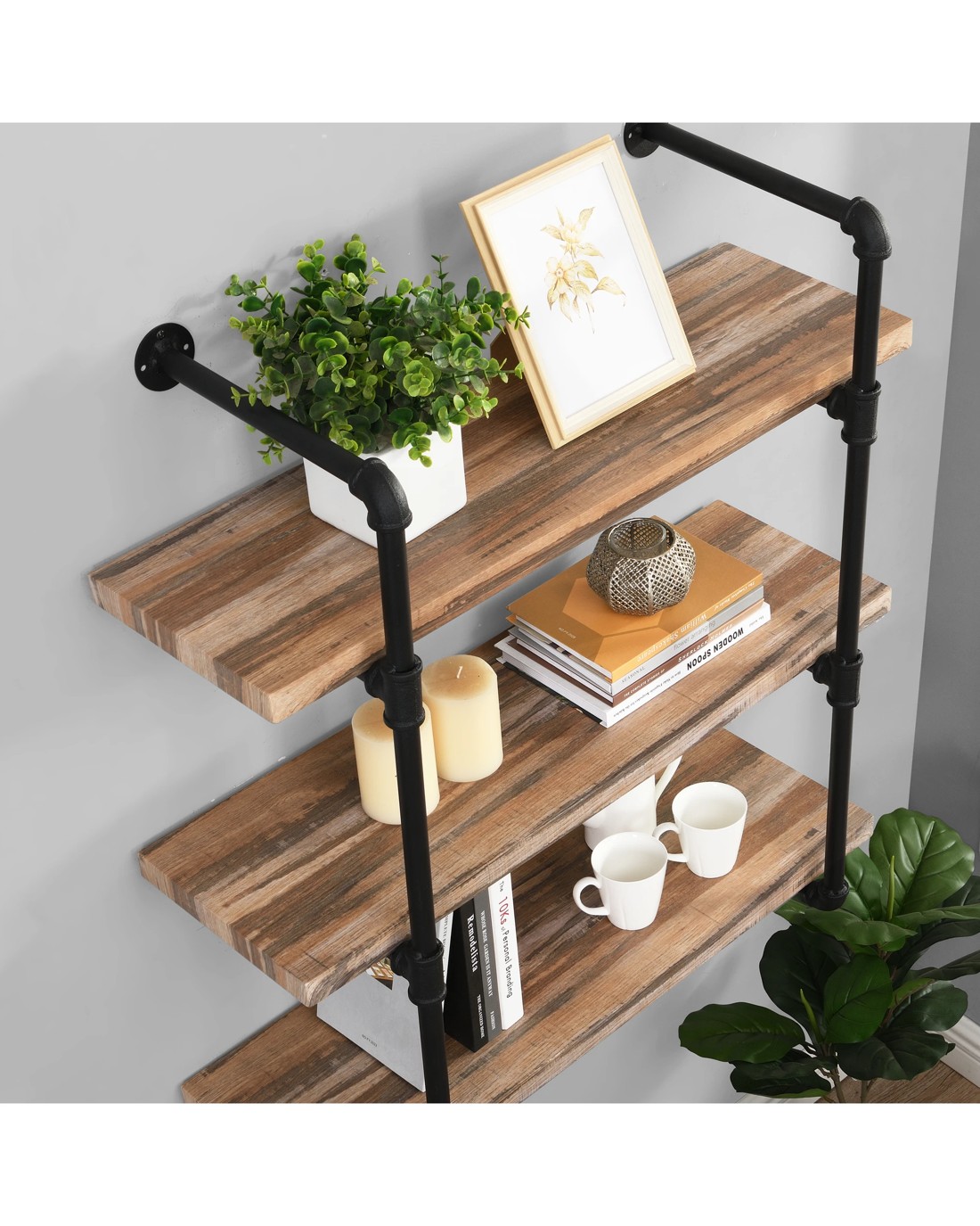 About this item Perfect for Storing Decorations and Organize: Perfect for Storing Decorations or Pantry Items to Organize Any Room in Tidy Condition. Enhance Storage and Display Space in Any Home. Pipe Shelf Overall Dimensions: 80 X 30.5 X 90.5cm (W*D*H). Board Size: 80 X 25 X 3cm (W*D*H). Height between Shelves: 29cm. Constructed with Durable MDF: This mounted shelves are perfect for storing and displaying a variety of items, collectible, picture frame or potted plant. Bears High Weight Capacity:Constructed with Durable MDF (not solid wood) and Sturdy Iron Pipe that Bears High Weight Capacity. Each Shelf could Hold 15kg. Industrial Water Pipe Design: This Cool Looking Industrial Water Pipe Design, Adds an Vintage Style and More Vertical Storage to Your Living Room, Bedroom, or Office Space. Easy Assembly Required, All Hardware and Instruction are Included. 3-Tier Retro Brown Rustic Pipe Shelving Unit Wall Bookshelf Dimension: 80 X 30.5 X 90.5cm (W*D*H) Board Size: 80 X 25 X 3cm (W*D*H) Weight Capacity: Each shelf can hold 15kg Item Weight: 6.5Kg Height between Shelves: 29kg without adjustable. Package: 1*3 Tier bookcase, 1* instructions kit