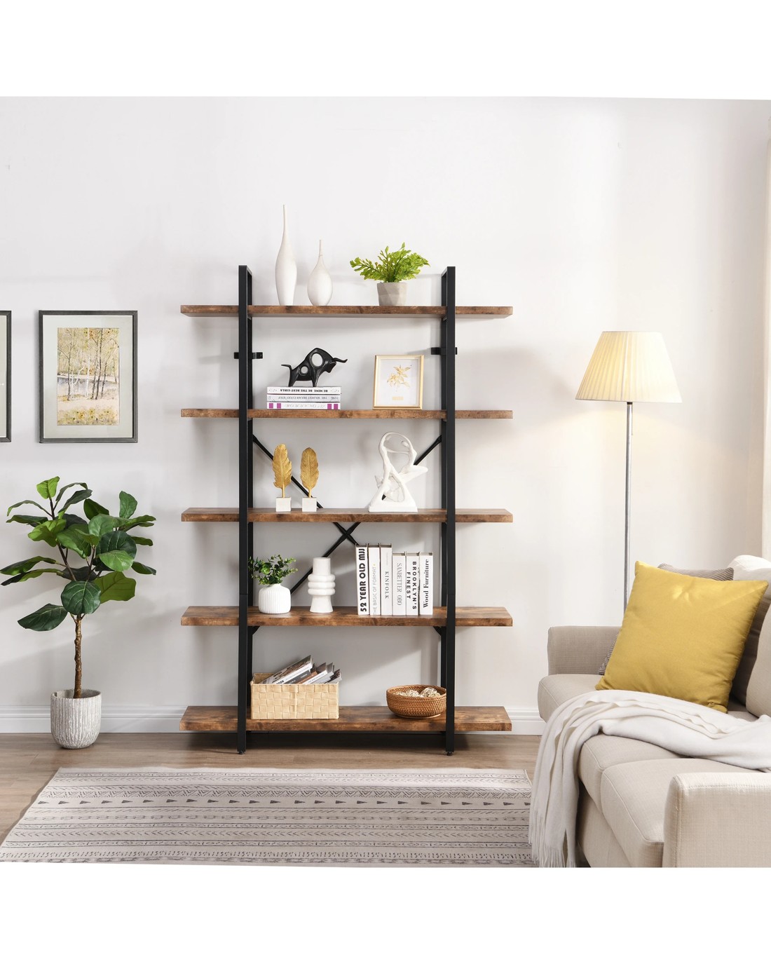 IHOMDEC 5 Tier Industrial Bookshelf