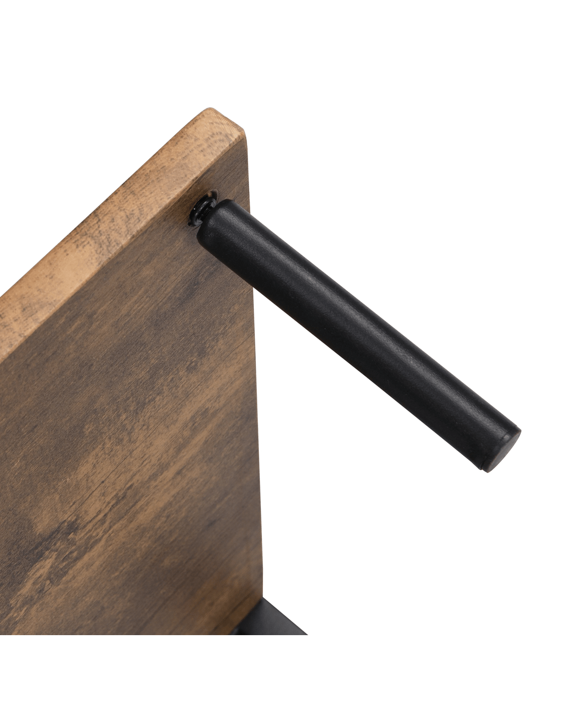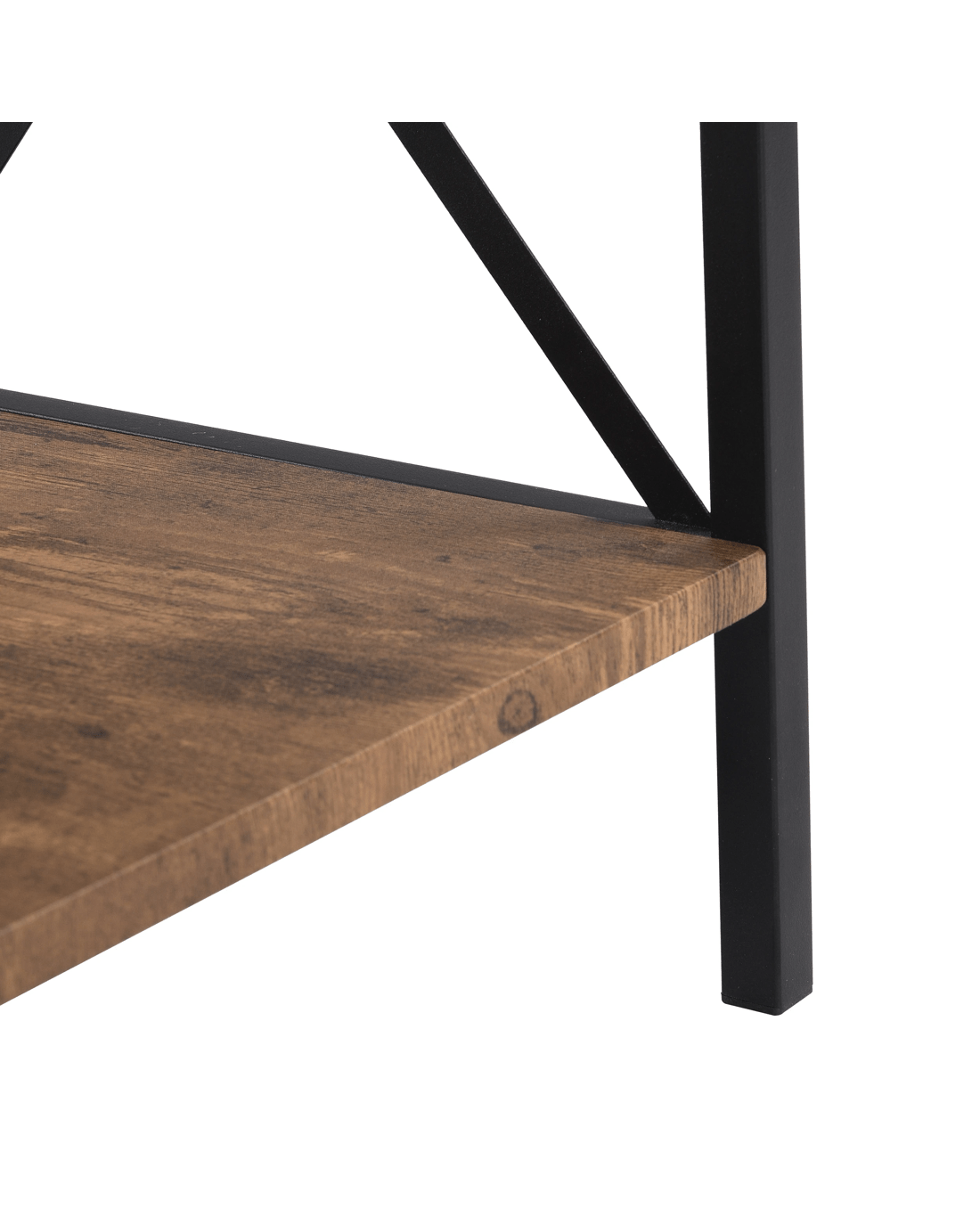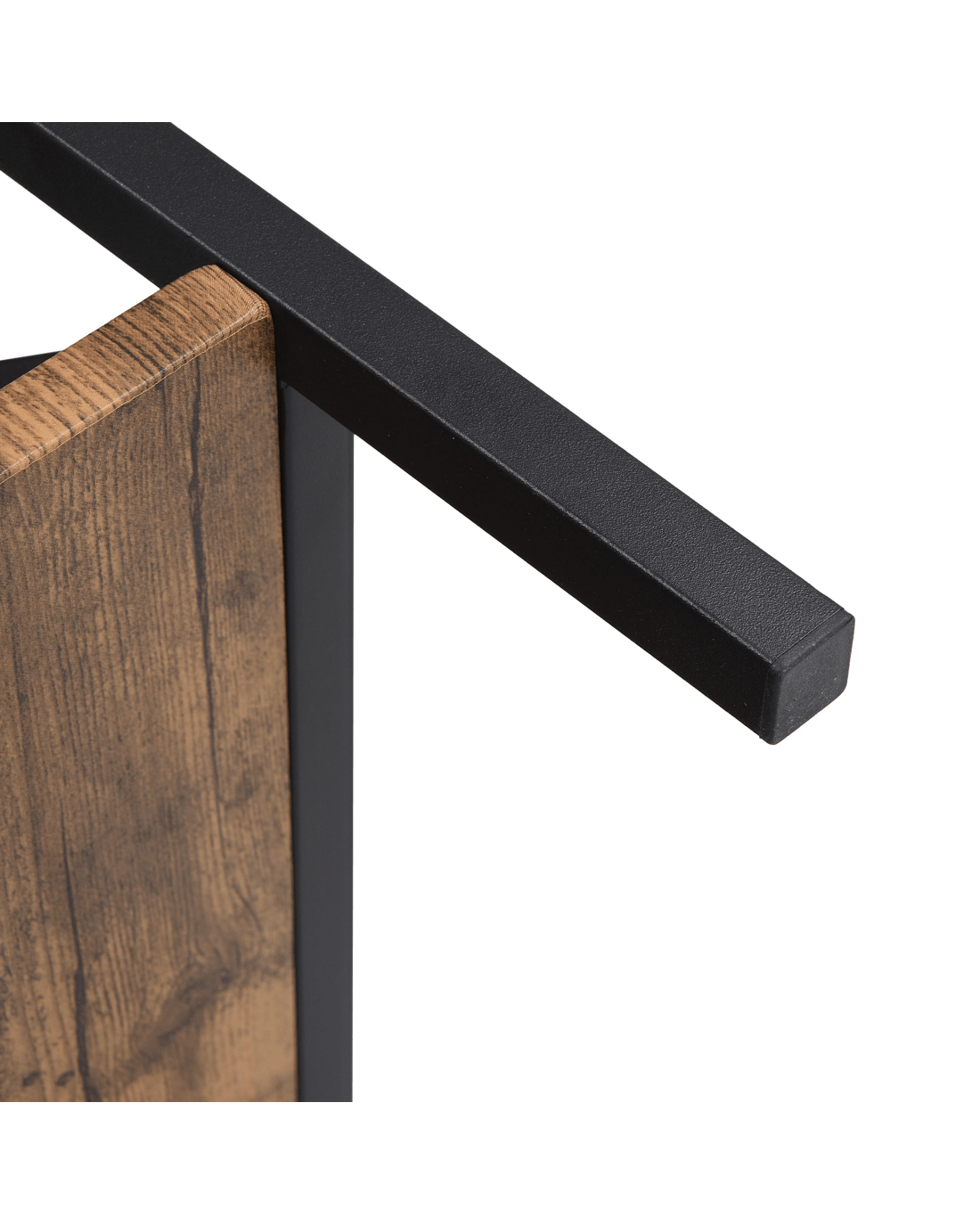 Industrial 6-Tier Square Corner Bookshelf, 186.5cmH Rustic Dark Brown Product details Multifunctional Corner Shelves: Maximize the corner space of your room, kitchen, balcony with this corner shelf unit, which can work as a small corner bookshelf, display rack, plant shelf to help your home out of clutter. Space-saving Design: Freestanding corner bookcase makes full use of limited corner space and easily fit into your room without occupying large space, perfect home decor for your living room, bedroom, study room even kitchen. Solid Construction: Crafted from thick rustic finish MDF board and heavy duty black-finished metal frame, which not only adds an contemporary industrial style, but also strengthens the durability and weight capacity for long time use. Features Materials: steel frame with black painting,MDF board(not solid wood) + melamine surface Number of Shelves:6 Shelves shape:square Solid and durable construction Wall bracket to prevent from wobbling Plastic non-slip feet Product Details Shelf Material: 1.5cm height MDF board+ melamine surface Frame Material Details: Steel with black painting Primary Colour: Black; Rustic Dark Brown Minimal assembly is required, recommended 2 persons Care Instructions: wipe clean & polish frame with microfibre cloth; to protect against scratching & general wear, use of coasters & placemats is highly recommended Dimensions Overall Dimension:186.5cm H x 36.5cm W x 36.5cm D MDF shelves dimensions:1.5cm H x 34.7cm W x 34.7cm D Clearance between Shelves:33.5cm(36.5cm for 3rd & 4th) Clearance from Middle shelf bottom to floor:11cm Each shelf Weight capacity:10kg Overall Product Weight Capacity: 60 Kg Box content 1 x Corner bookshelf 1 x hardware pack 1 x assembly manual