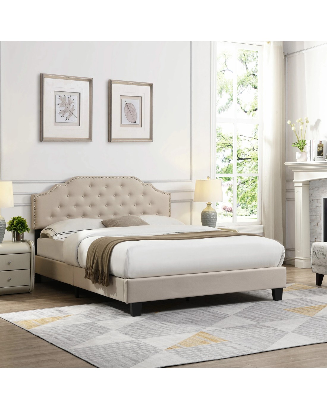 Sold by Ihomdec FurnitureIHOMDEC BEF02 Queen Size Bed Frame Base - Beige - Beige