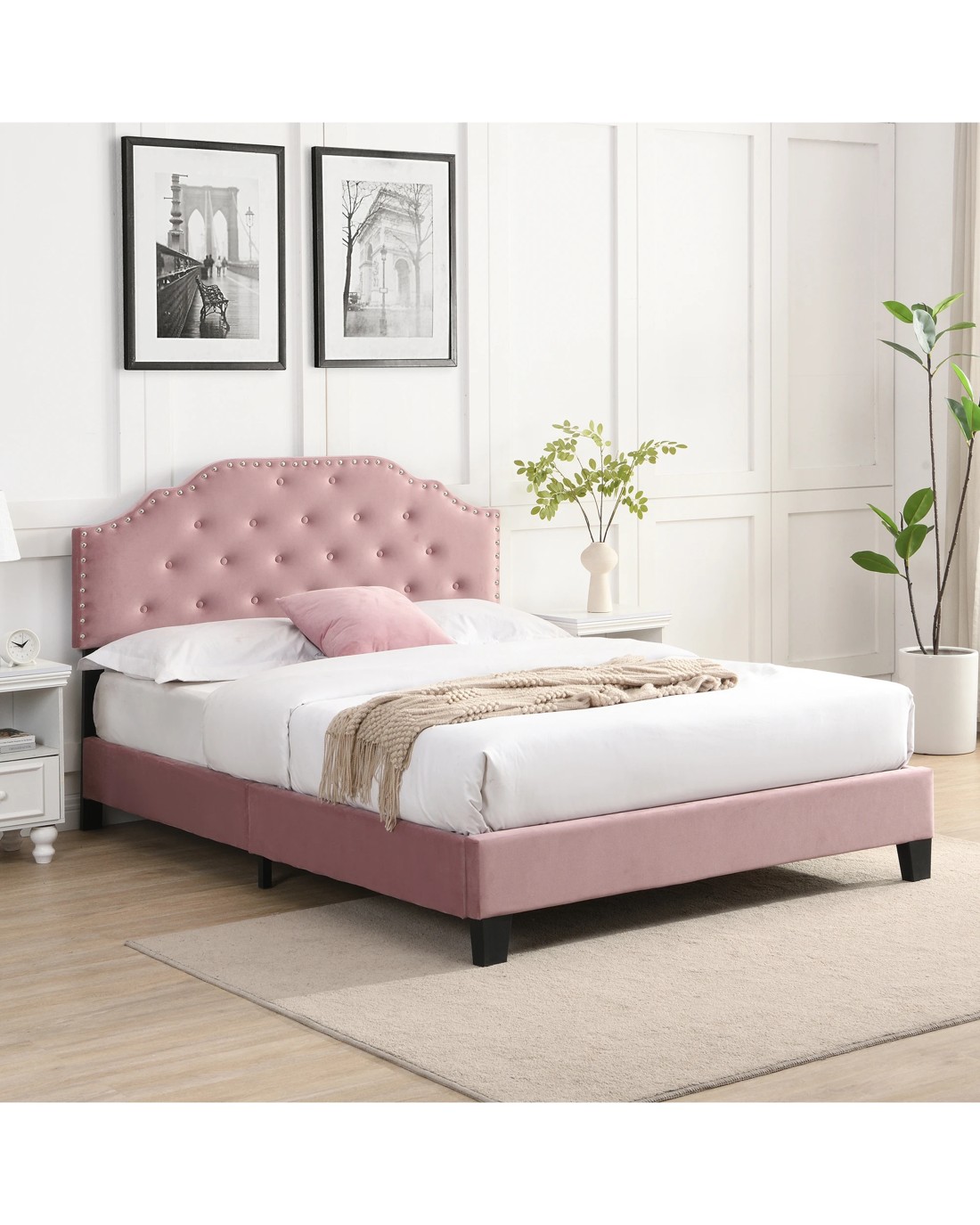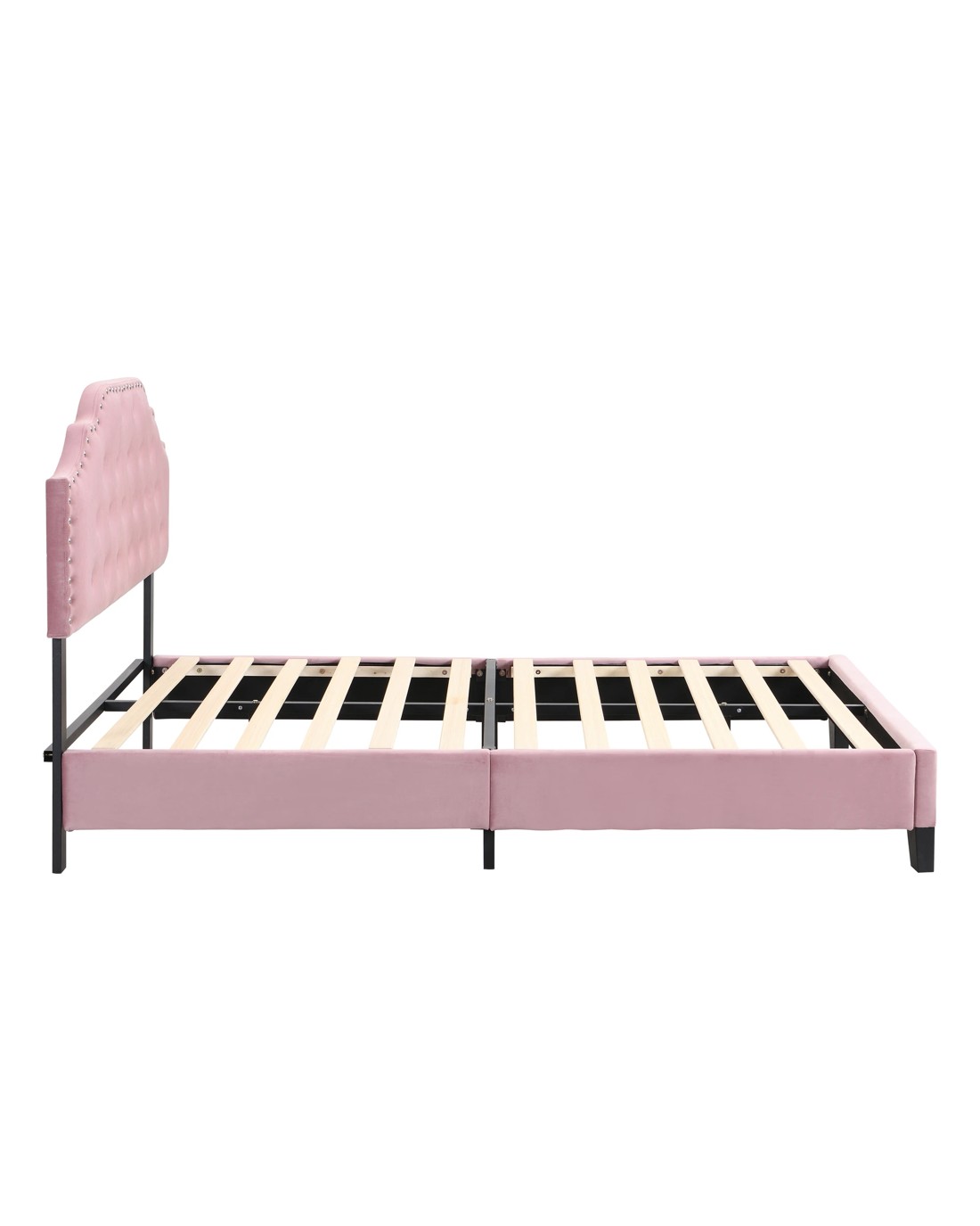 Sold by Ihomdec FurnitureIHOMDEC BEF02 Queen Velvet Button Tufted Bed Frame - Pink - Pink